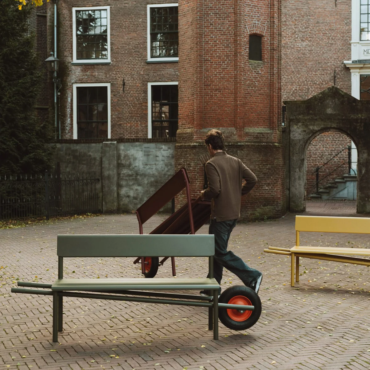 De Wheelbench van Weltevree is een draagbare tuinbank die gemakkelijk kan worden vervoerd naar elke buitenlocatie dankzij het ingebouwde kruiwagenwiel. Geplaatst in de tuin of op het terras kun je ontspannende uren in de zon doorbrengen op de bank en op barbecue-avonden kan de bank eenvoudig naar de tafel worden gerold als extra zitplaats voor spontane gasten. Met een lengte van 2 meter biedt de bank comfortabel plaats aan 3 tot 4 personen.