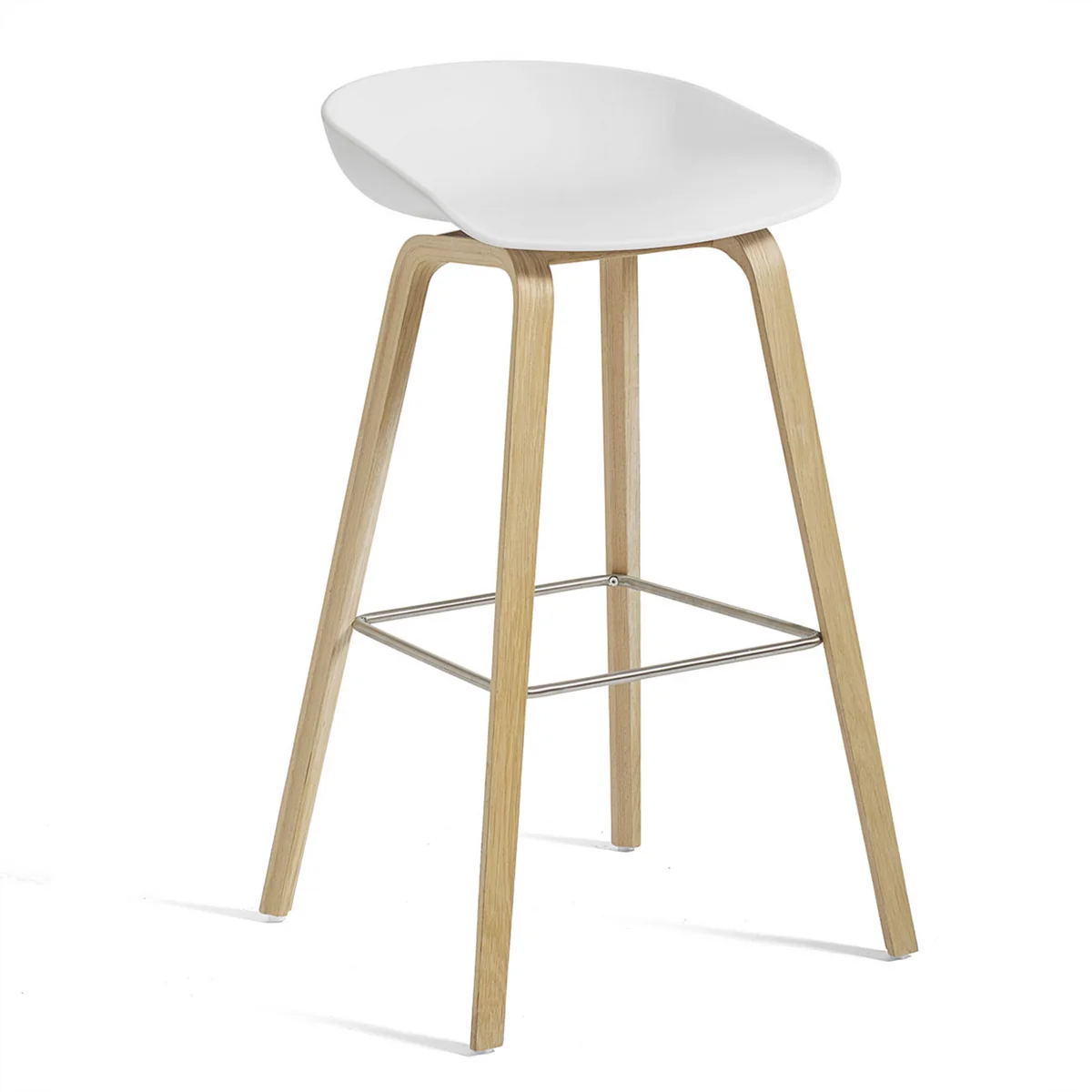 De krukken van HAY krukken hebben een opvallend eenvoudig ontwerp. Ontwerper Hee Welling heeft hiermee een nieuw niveau bereikt in de combinatie van vorm, functie, comfort, detail en esthetiek. De AAS 32 breidt de serie uit met een barkruk met een houten frame dat perfect aansluit bij de filosofie van de andere meubels.