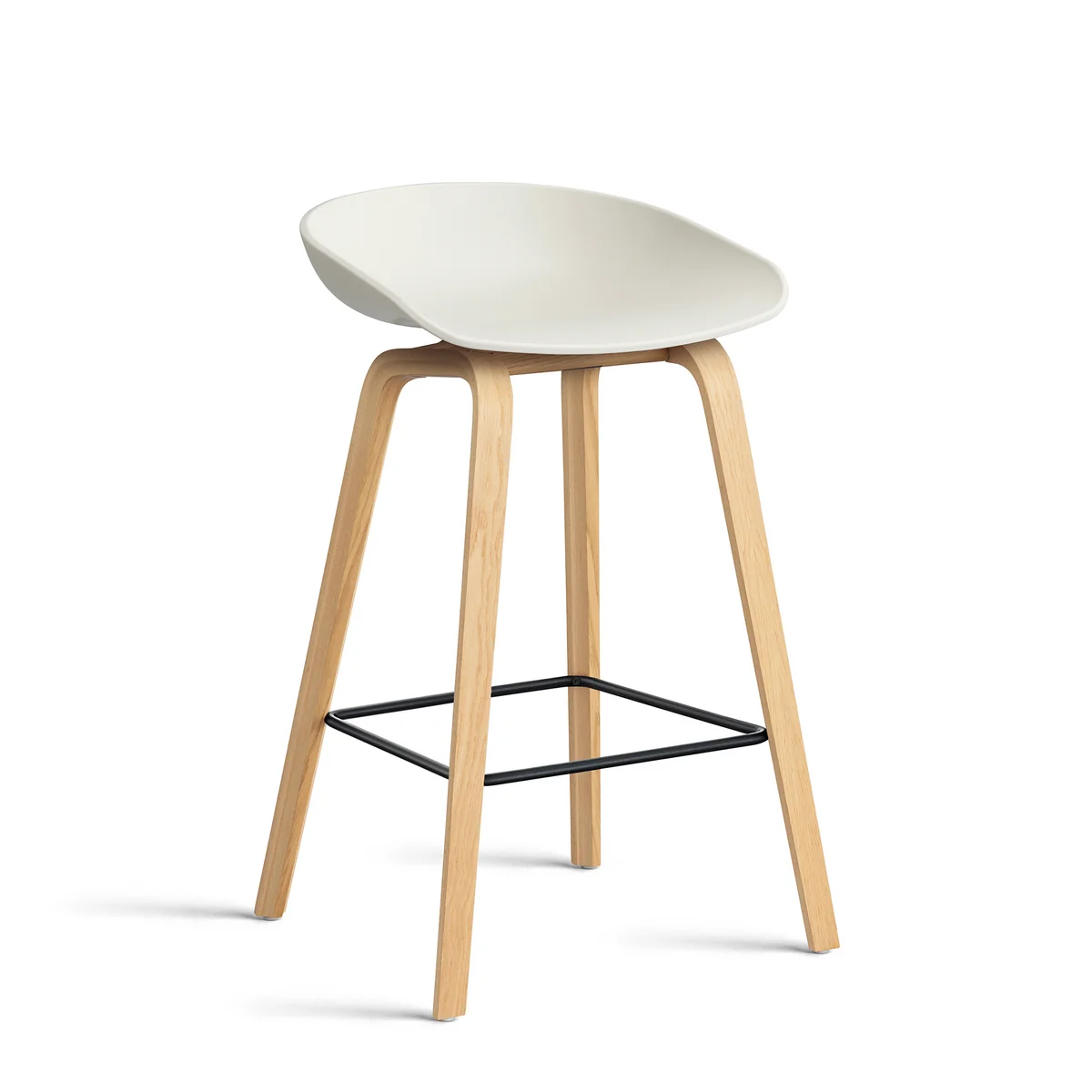 De krukken van HAY krukken hebben een opvallend eenvoudig ontwerp. Ontwerper Hee Welling heeft hiermee een nieuw niveau bereikt in de combinatie van vorm, functie, comfort, detail en esthetiek. De AAS 32 breidt de serie uit met een barkruk met een houten frame dat perfect aansluit bij de filosofie van de andere meubels.