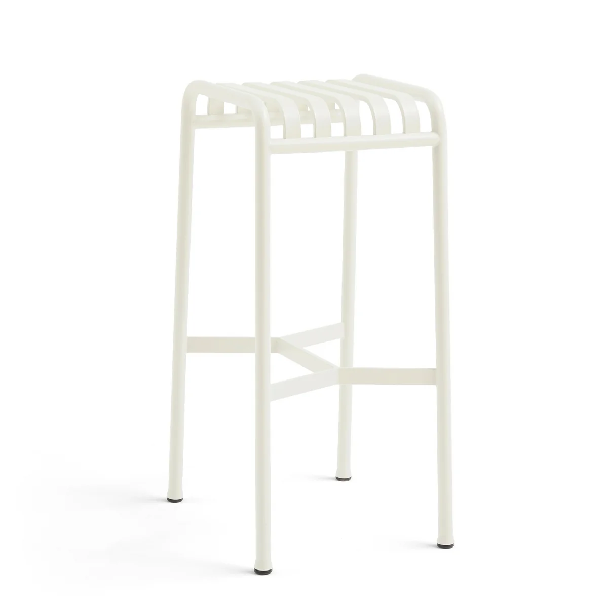 Palissade Met zijn open vorm heeft de barkruk een lichte en zorgeloze uitstraling, maar het stalen materiaal maakt hem extreem robuust. De steunen op de zitting zorgen ervoor dat regenwater wegloopt, waardoor de kruk gemakkelijker schoon te maken is. Dankzij de ergonomische vorm is hij ook comfortabel zonder zitkussen, waardoor hij de perfecte metgezel is voor buitengebruik.