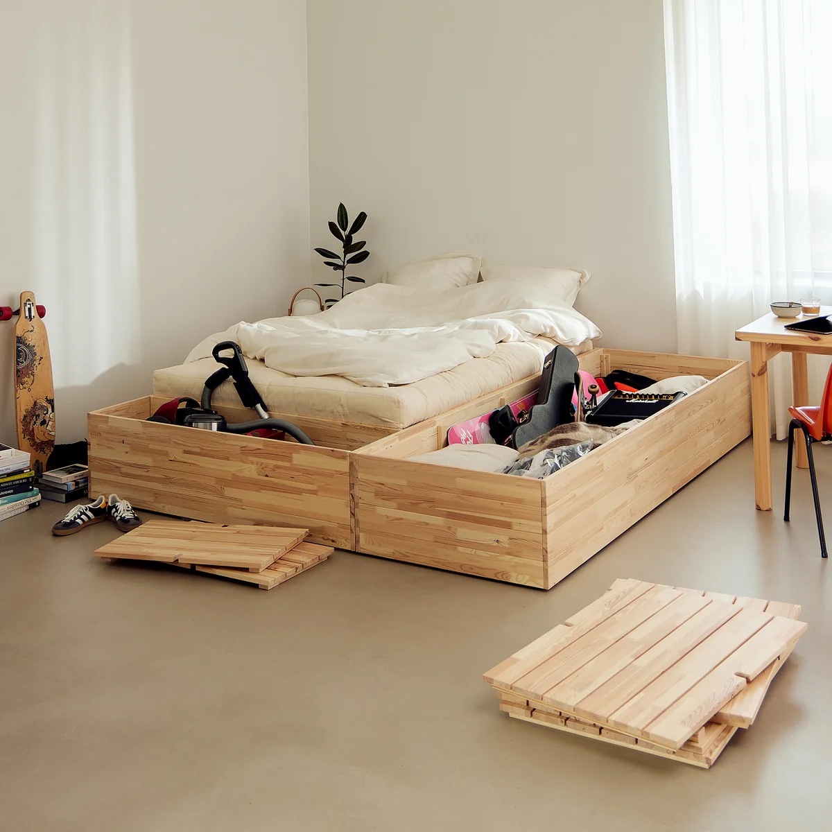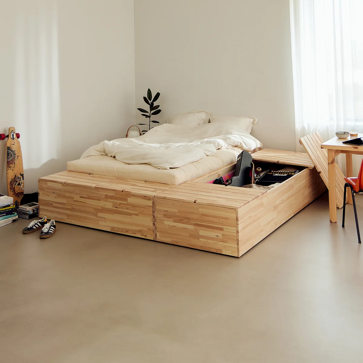 - Verborgen opbergruimte onder het bed voor maximaal ruimtegebruik