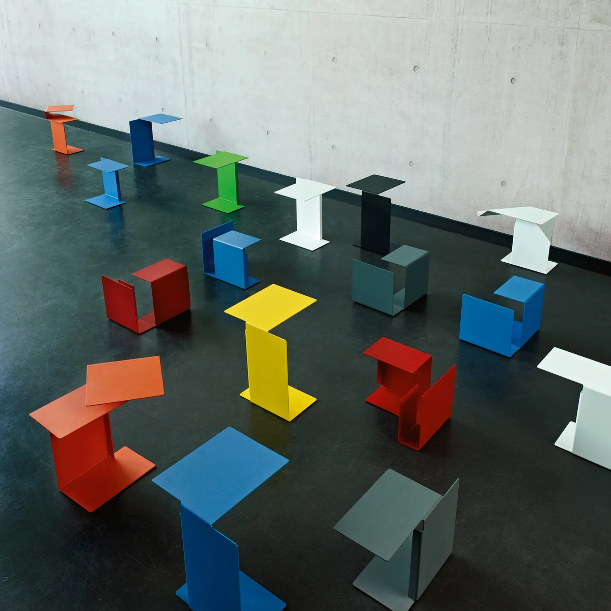 Bijzettafeltje? Staand bureau? Notebook standaard? Referentie bibliotheek? Konstantin Grcic's serie plaatstalen tafels staat open voor vele interpretaties en toepassingen - maar bovenal voor de verbeelding. Zoals woorden ontstaan uit letters, zo groeperen de Diana-tafels zich om steeds nieuwe visuele contexten te vormen met andere meubelen en voorwerpen. Met het Diana-alfabet van A tot F (zoveel variaties van de tafel zijn er) kan een huiskamer worden omgetoverd tot een café of tot een woord uit een geheel nieuwe, zeer persoonlijke taal.