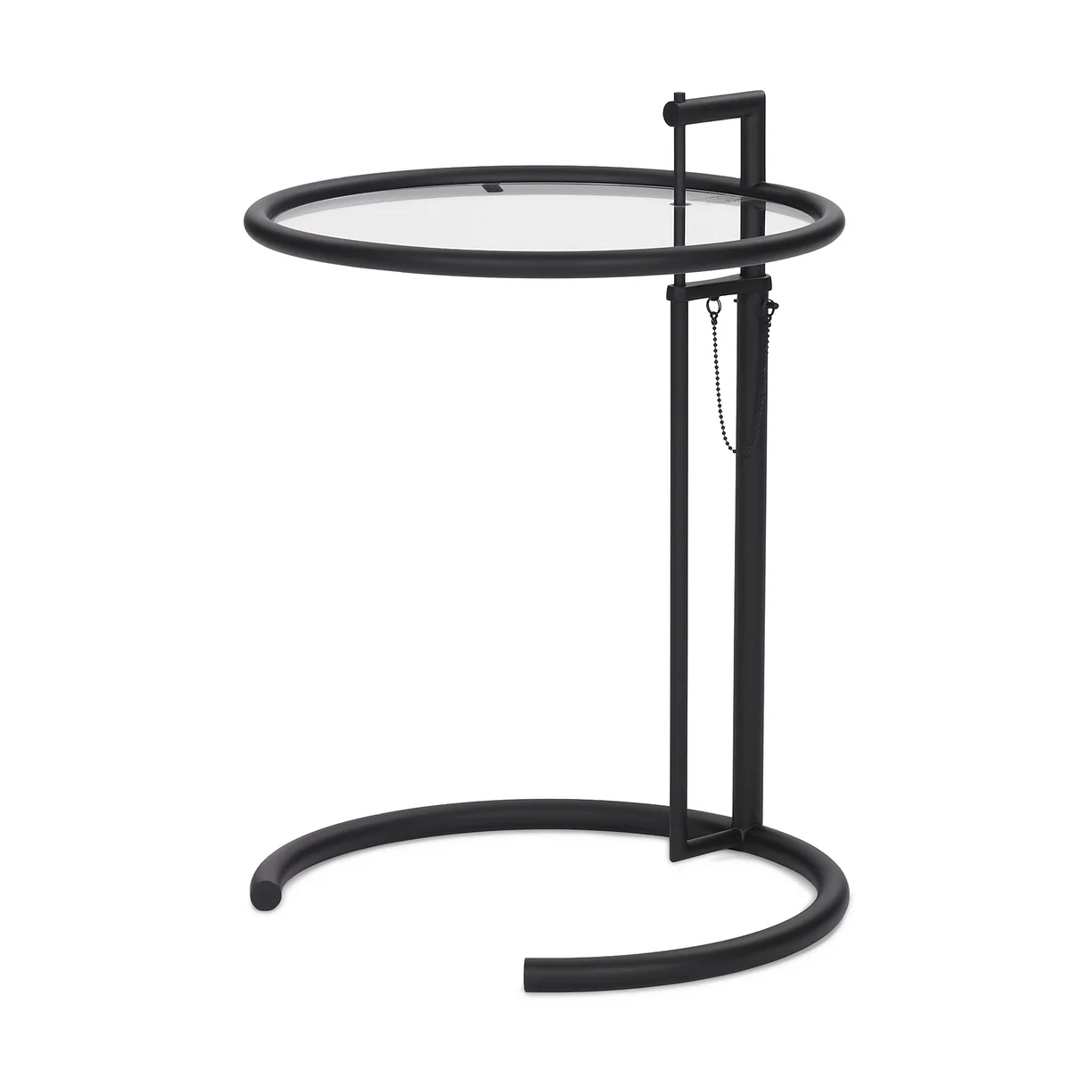 Het uiterlijk van de verstelbare tafel E 1027 is even eenvoudig als klassiek en combineert hoogwaardige materialen: het frame is gemaakt van gepoedercoate stalen buizen. Het ronde tafelblad is verkrijgbaar in verschillende uitvoeringen. Doordat het frame in hoogte verstelbaar is, kan het bijzettafeltje flexibel worden gebruikt en kan het worden gecombineerd met een grote verscheidenheid aan meubels: als klassiek bijzettafeltje, als nachtkastje of legbord naast het bed, als telefoontafel of voor andere doeleinden. De Adjustable Table is een veelzijdige klassieker die zowel qua vorm als functie indruk maakt.
