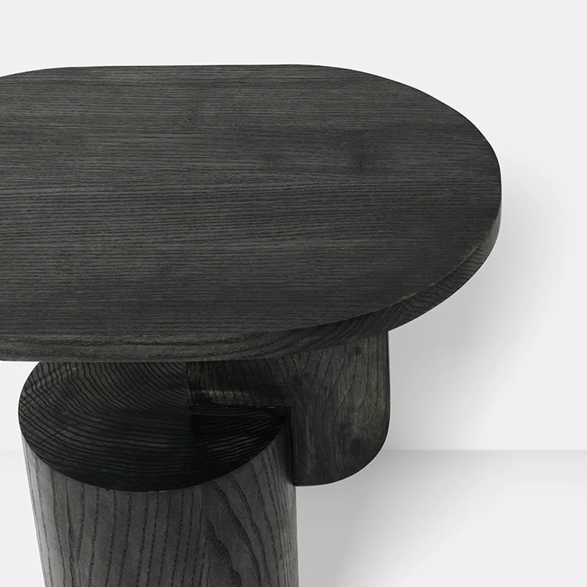 De geometrische tafel bestaat uit een stevige cilindervoet en een ovaal tafelblad verbonden door een afgeronde rechthoek. De zachte rondingen en heldere randen creëren een subtiel kunstwerk voor een moderne inrichting. Dankzij het kleine formaat past de tafel ook perfect in kleine stadsappartementen. Voor de bank of naast een fauteuil of bed wordt de tafel een decoratieve opbergruimte voor boeken, een kopje koffie of een vaas met een rijkelijk boeket bloemen.