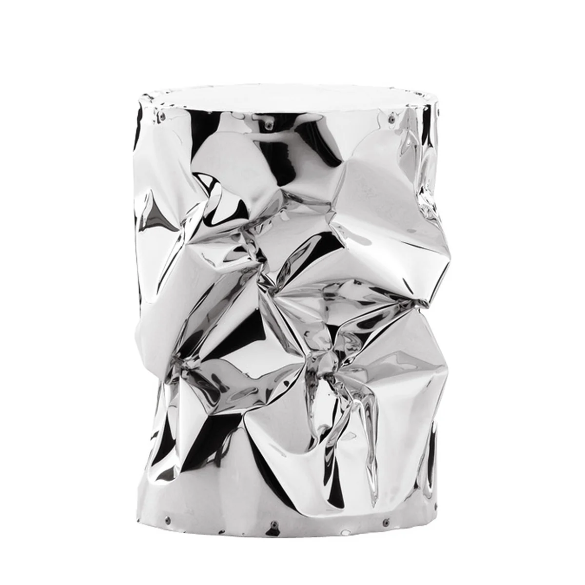 De Tab.U bijzettafel wekt verschillende associaties tegelijk op, en zijn gevouwen aluminium oppervlak doet een beetje denken aan een geplet blikje. Het reflecterende oppervlak creëert door zijn structuur een uniek opwindend en ongewoon design - het glanzende, reflecterende aluminium verleent de bijzettafel moderniteit.