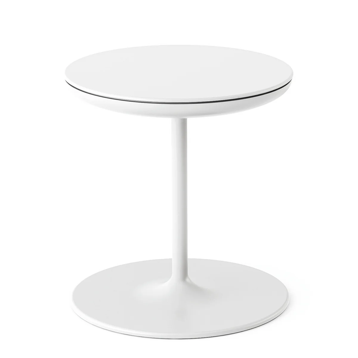 De bekroonde Toi bijzettafel van Zanotta is ontworpen in een edele, eenvoudige uitstraling en valt vooral op door de vele rondingen en het ronde, uitneembare tafelblad. Deze kan worden geopend en gesloten door middel van het onderstaande opbergvak.