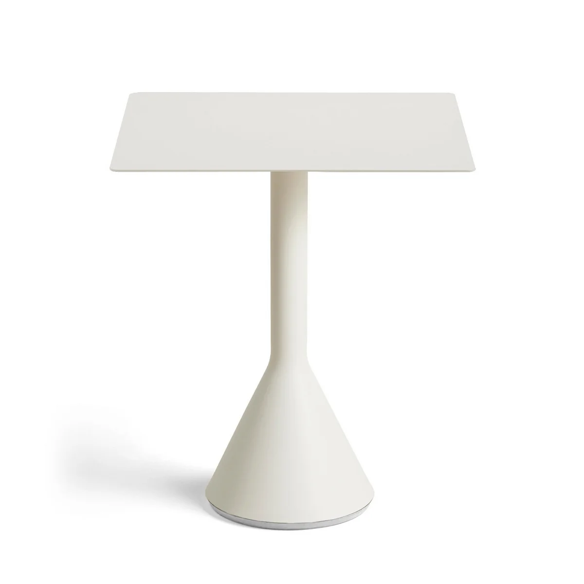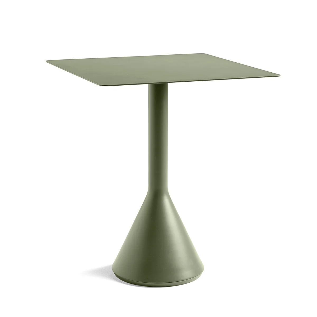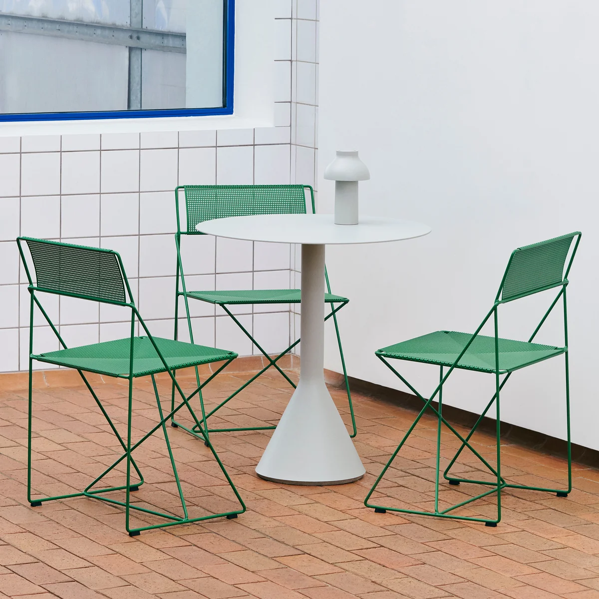 De Palissade Cone bistrotafel is een nieuwe toevoeging aan de outdoor Palissade HAY serie en wordt gekenmerkt door zijn kegelvormige basis, die gevuld is met beton om stabiliteit te garanderen. & Ondanks de robuuste eigenschappen is het onderstel geenszins lomp, maar heeft het eerder een grafische touch in combinatie met het dunne tafelblad, dat ook herkenbaar is in de rest van de serie ontworpen door Ronan Erwan Bouroullec.
