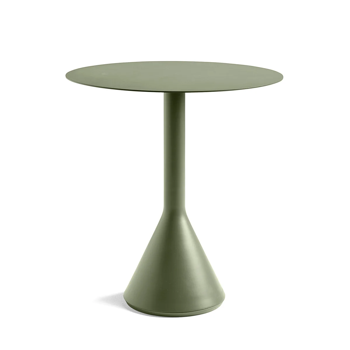 De Palissade Cone bistrotafel is een nieuwe toevoeging aan de outdoor Palissade HAY serie en wordt gekenmerkt door zijn kegelvormige basis, die gevuld is met beton om stabiliteit te garanderen. & Ondanks de robuuste eigenschappen is het onderstel geenszins lomp, maar heeft het eerder een grafische touch in combinatie met het dunne tafelblad, dat ook herkenbaar is in de rest van de serie ontworpen door Ronan Erwan Bouroullec.