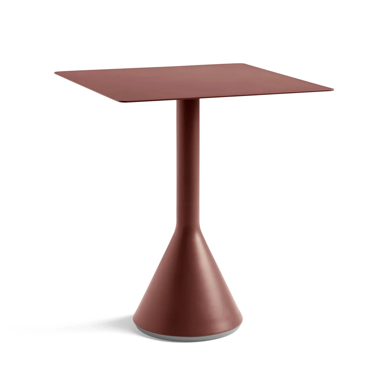 De Palissade Cone bistrotafel is een nieuwe toevoeging aan de outdoor Palissade HAY serie en wordt gekenmerkt door zijn kegelvormige basis, die gevuld is met beton om stabiliteit te garanderen. & Ondanks de robuuste eigenschappen is het onderstel geenszins lomp, maar heeft het eerder een grafische touch in combinatie met het dunne tafelblad, dat ook herkenbaar is in de rest van de serie ontworpen door Ronan Erwan Bouroullec.