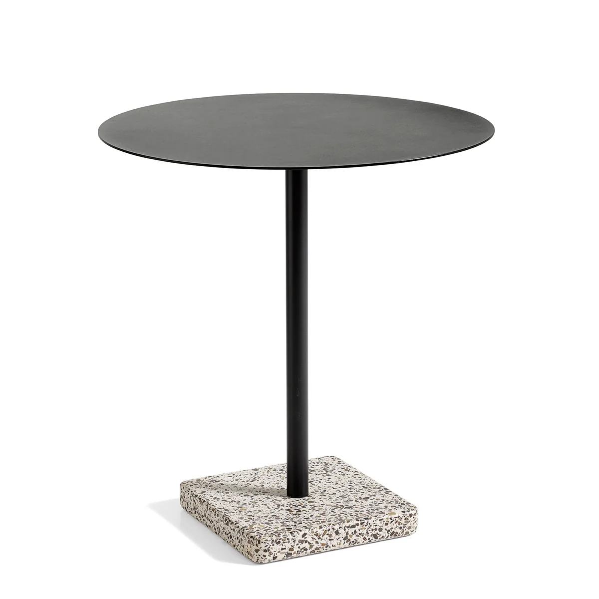De ronde tafel Terrazzo van HAY is een veelzijdige tafel voor buiten- en binnengebruik. De tafel is speciaal ontworpen voor omgevingen waar hoge kwaliteit en duurzaamheid vereist zijn - zoals cafés, restaurants, tuinen, terrassen of balkons. De ontwerper Daniel Enoksson heeft daarom alleen bepaalde materialen gekozen die uitstekend bestand zijn tegen de omstandigheden in de buitenruimte.