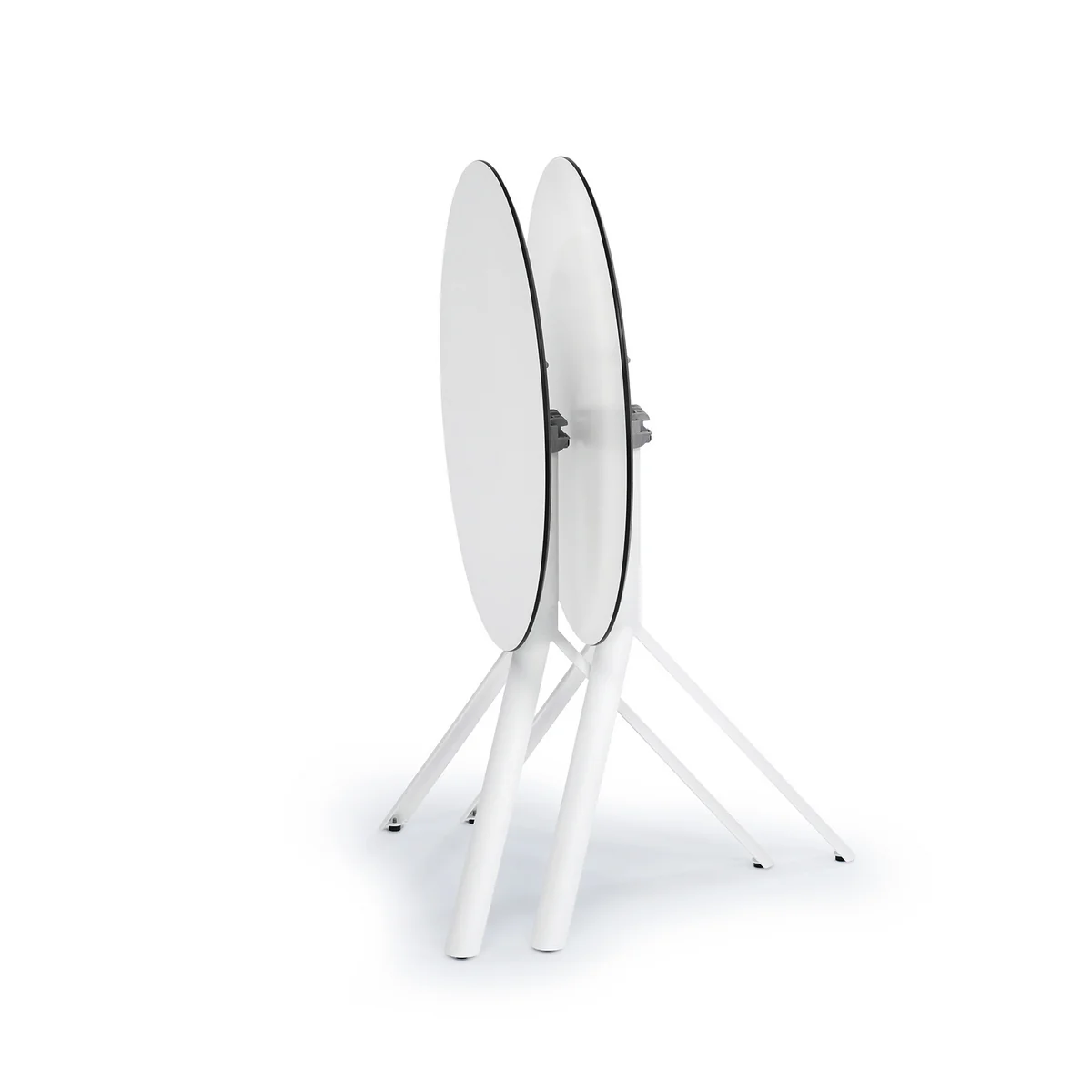 Three frames, three possible table heights, three different-sized, round table tops. Trio by Weishäupl is clearly a very universal and versatile table solution.