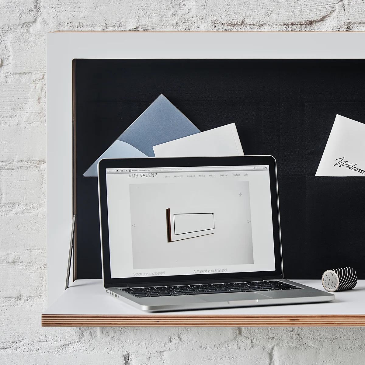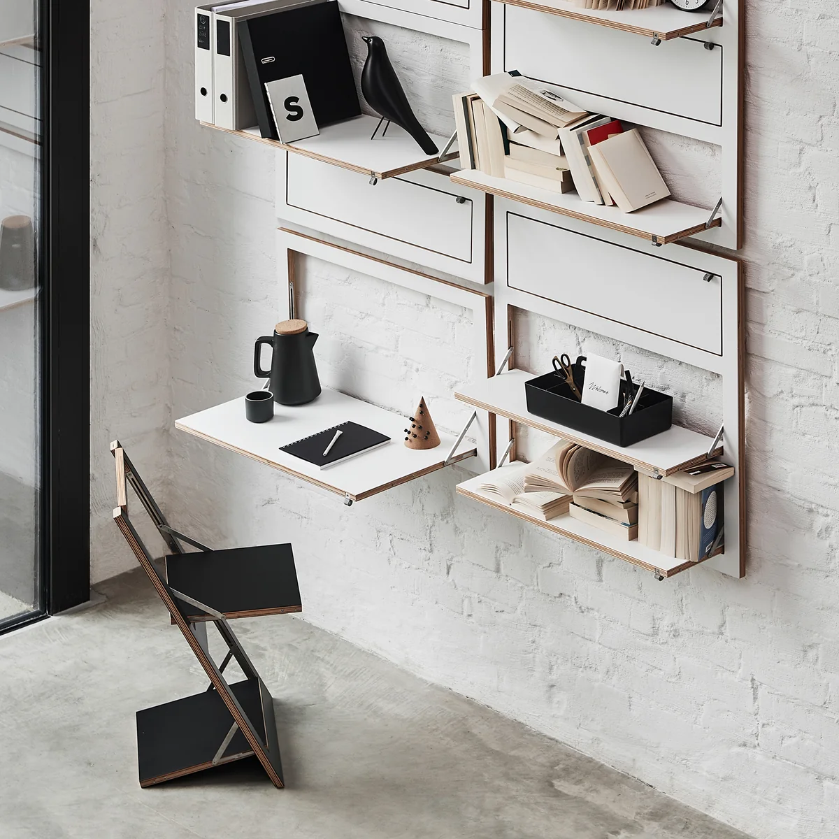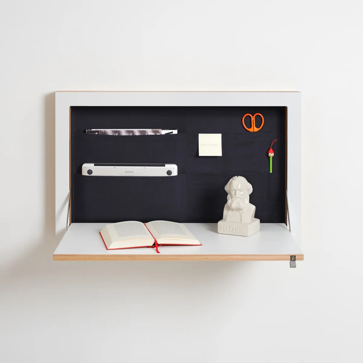 De Fläpps secretaire van Ambivalenz is een opvouwbare secretaire voor aan de muur. Ingeklapt overtuigt de secretaire met een extreem dunne totale diepte, maar pas uitgeklapt ontvouwt hij zijn volledige potentieel.