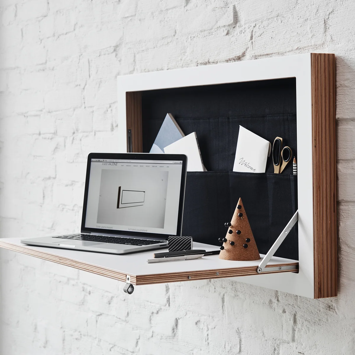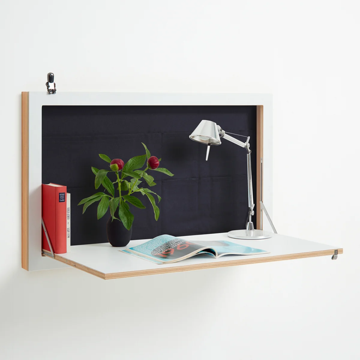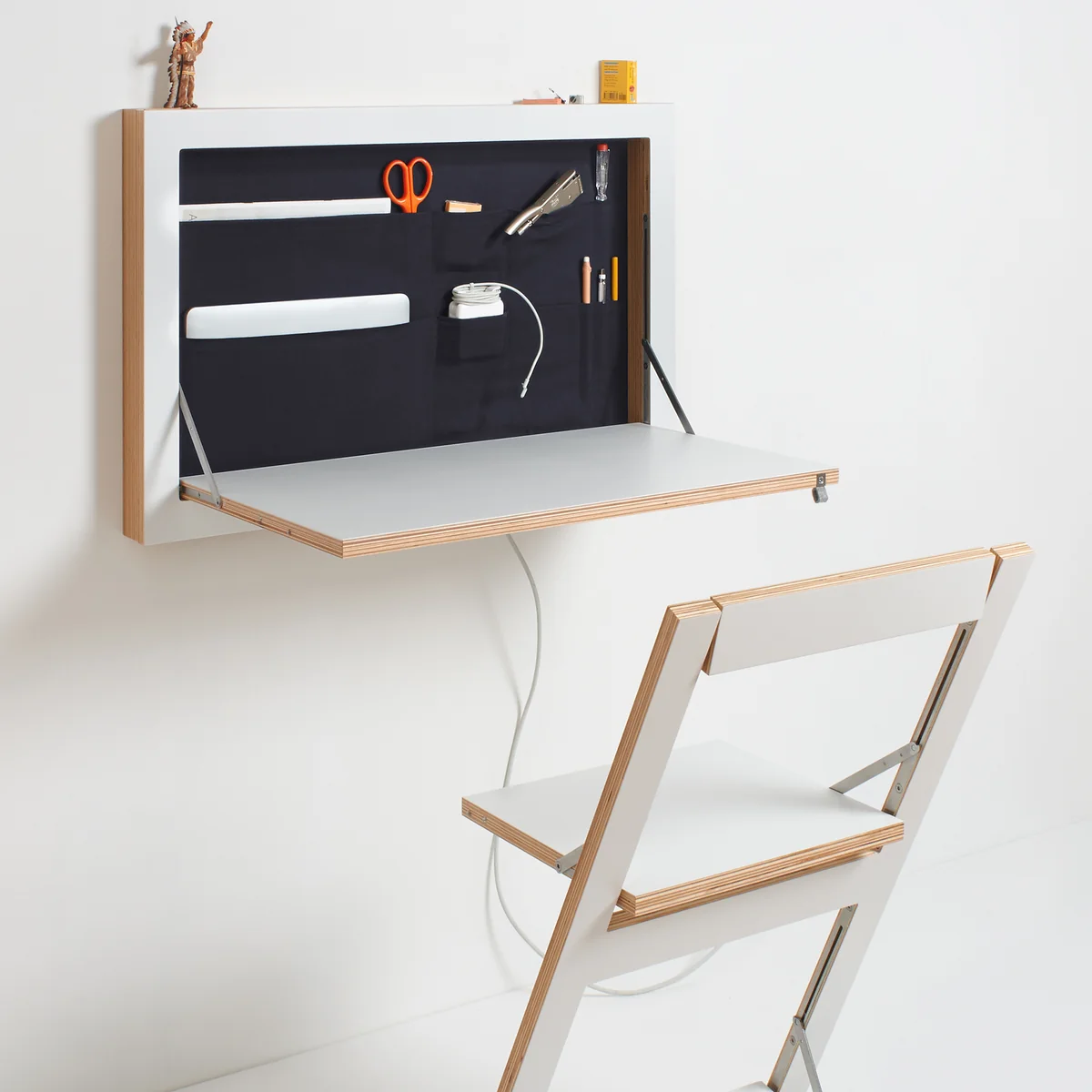 De Fläpps secretaire van Ambivalenz is een opvouwbare secretaire voor aan de muur. Ingeklapt overtuigt de secretaire met een extreem dunne totale diepte, maar pas uitgeklapt ontvouwt hij zijn volledige potentieel.