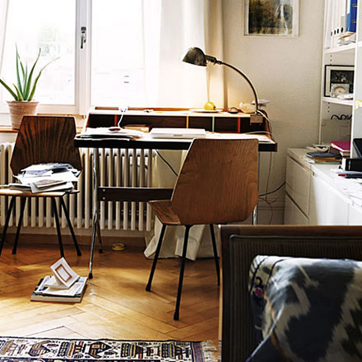 Even sierlijk als decoratief: deze thuiswerkplek met zijn verfijnde, rijkelijk geproduceerde voet en ingetogen kleuren is een van de designklassiekers van George Nelson. Oorspronkelijk ontworpen als een bureau voor dames, vandaag de dag heeft het veel toepassingen als een kleine werkplek thuis.