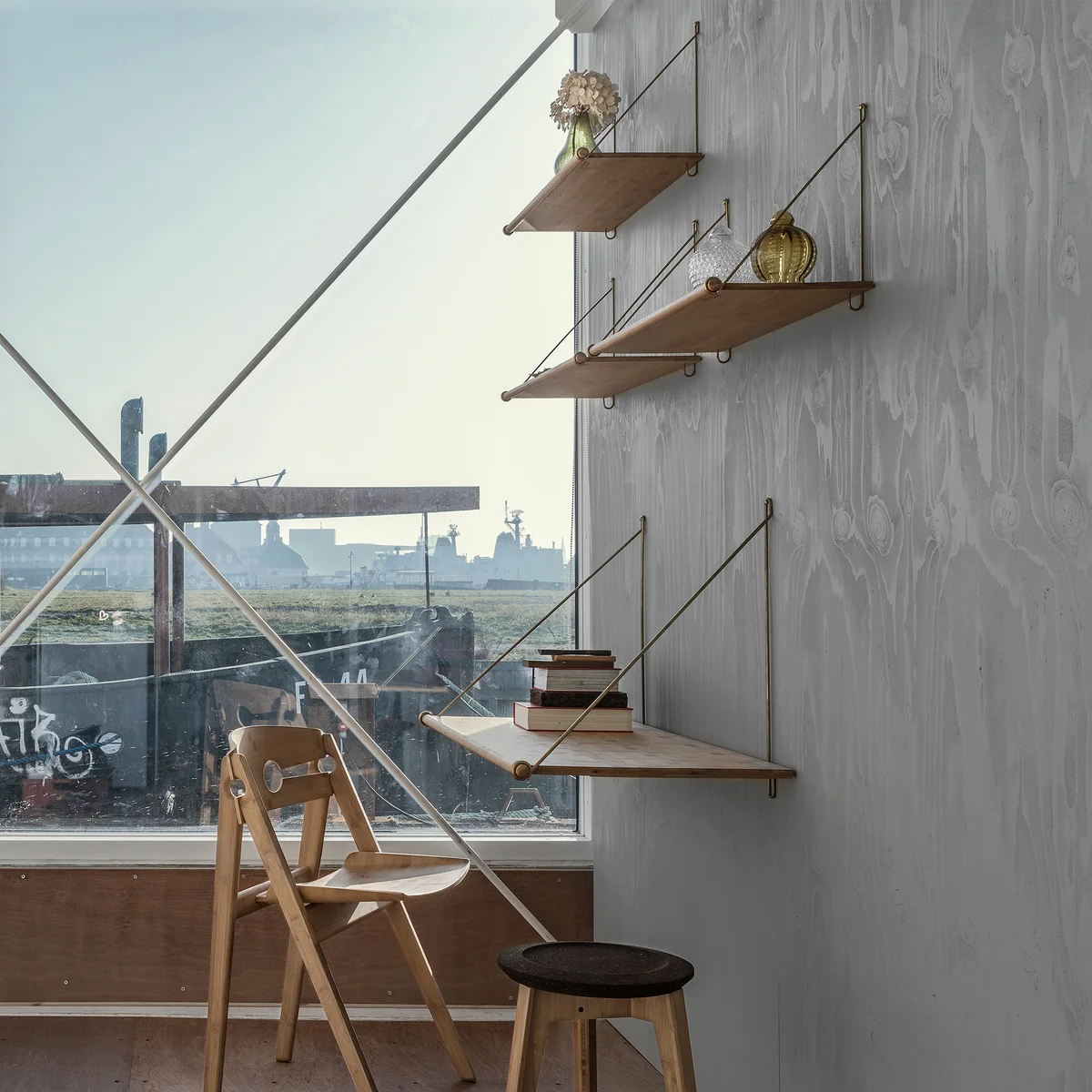 De Loop Desk is ontworpen door We Do Wood voor kleine ruimtes en transformeert ruimtes met beperkte ruimte in elegante en functionele werkplekken. Het aan de wand gemonteerde systeem zorgt voor een minimale voetafdruk en creëert een zeer moderne en flexibele look dankzij het slanke tafelblad en het lichte ontwerp. In combinatie met de Loop Shelf kan het bureau ook deel uitmaken van een groter rekkensysteem.