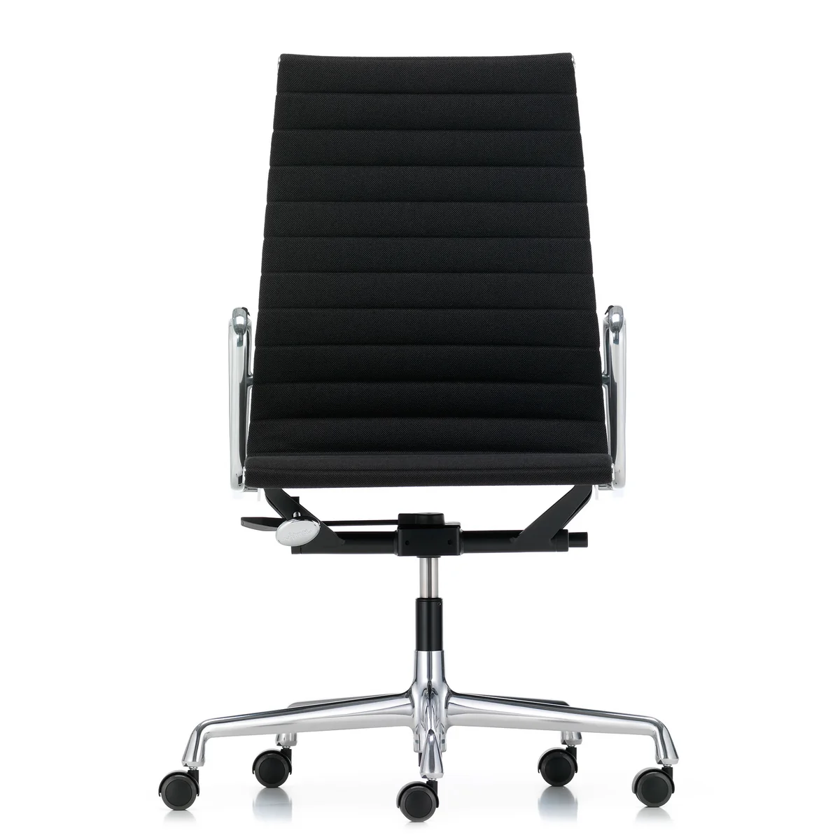 Kenmerkend voor de Aluminium Chair is de intelligente combinatie van materialen. De bekleding is aan de zijkanten aan de aluminium profielen bevestigd en vrij gespannen. De bekleding is dus geen schaal, maar een dragend deel van de constructie. Hij past zich aan het lichaam aan en biedt ook zonder uitgebreide bekleding een hoog comfort. In tegenstelling tot de andere producten uit het Aluminium Group assortiment hebben de EA 117 en EA 119 stoelen wielen op de poten.