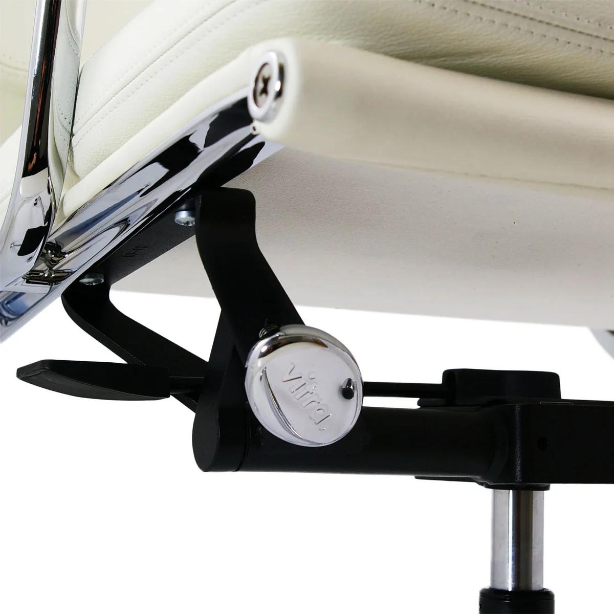 De bureaustoel Soft Pad Chair van Vitra werd in 1969 ontworpen door Charles & Ray Eames. Qua constructie en vorm lijkt hij op de structuur van de Aluminium Chair. De aangenaaide kussens vormen een interessant contrast met het slanke aluminium profiel. Dit maakt de Soft Pad Chair zachter en voluptueuzer zonder aan transparantie en helderheid in te boeten.