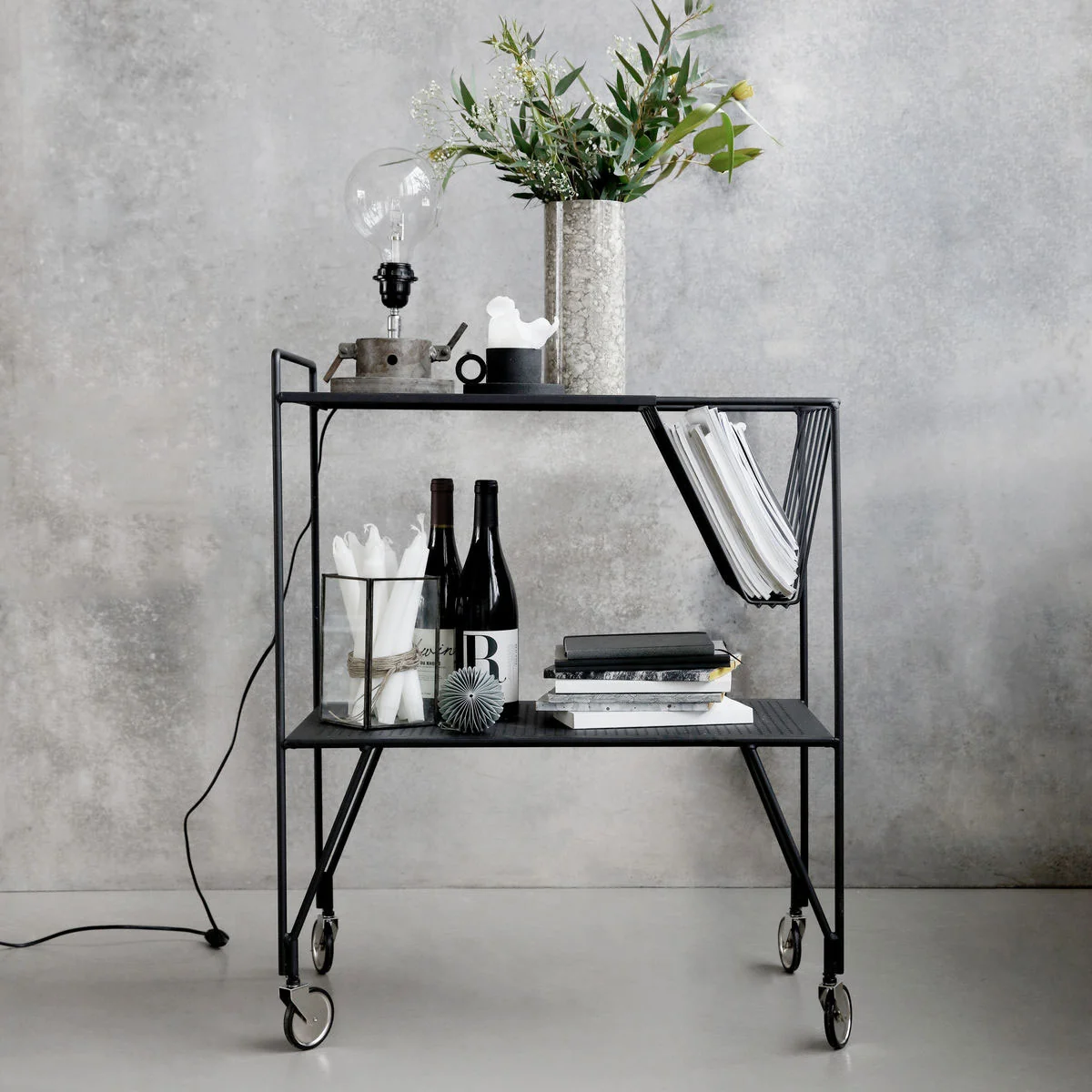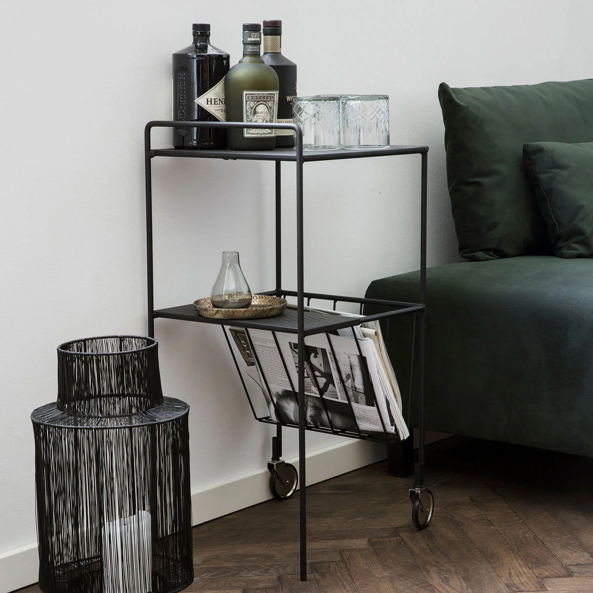 De Use trolley van House Doctor is een praktische en decoratieve tafel die op vele manieren gebruikt kan worden. De Use Trolley bestaat uit een filigraan stalen frame en vier wielen. Op twee niveaus kunnen verschillende dingen worden opgeslagen en gepresenteerd. Een bijzonder detail is het depot voor tijdschriften, tijdschriften en Co.