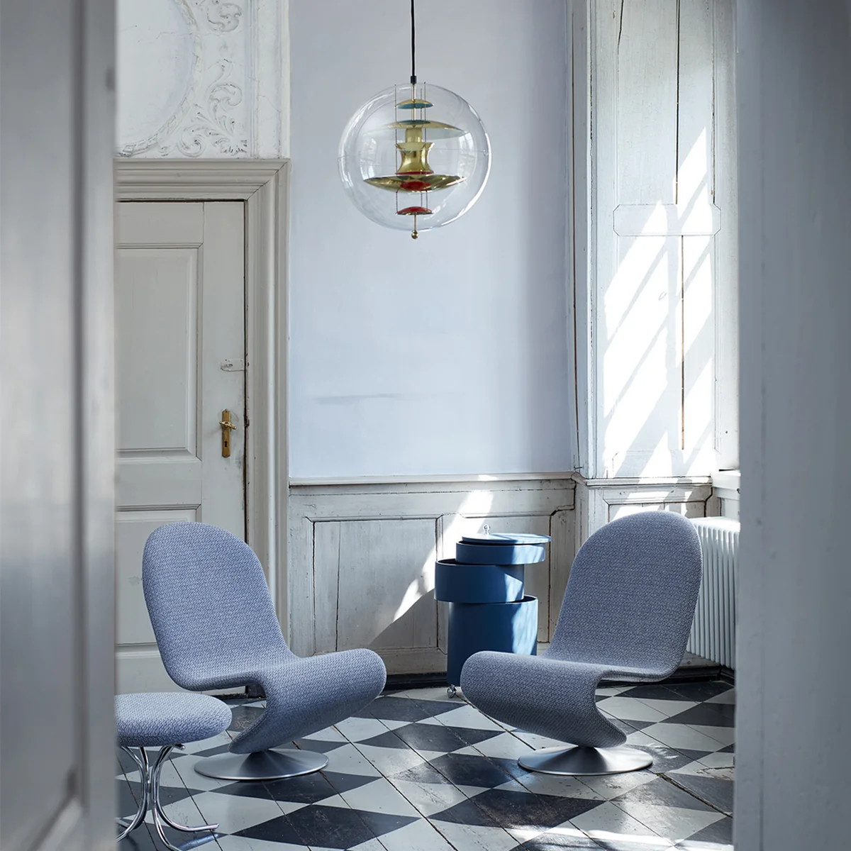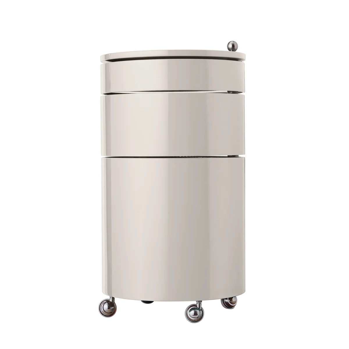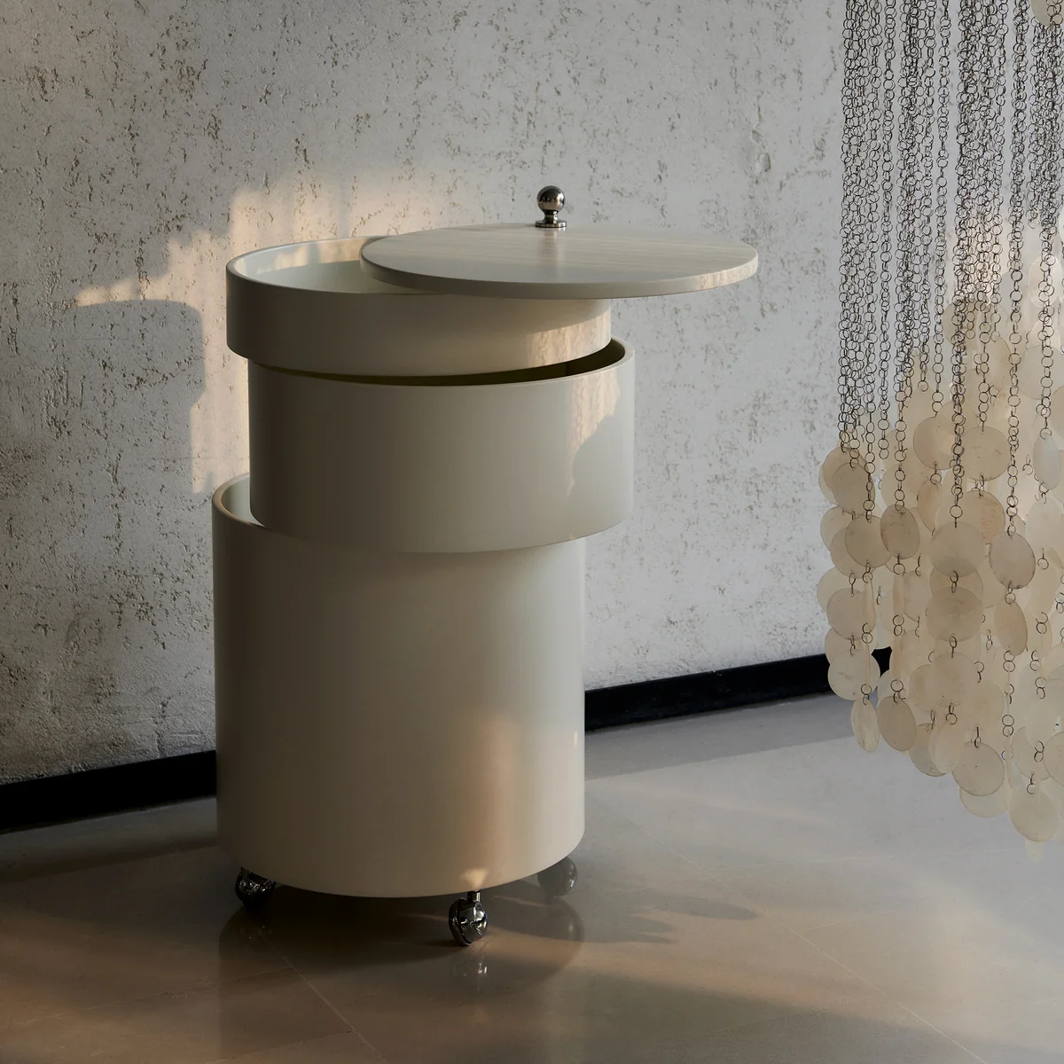 De Barboy is een perfect voorbeeld van Pantons benadering van het ontwerpen van flexibele leefruimtes: De barkast kan snel en gemakkelijk worden verplaatst op zijn vier verchroomde wielen, terwijl er genoeg ruimte is voor allerlei soorten inhoud.