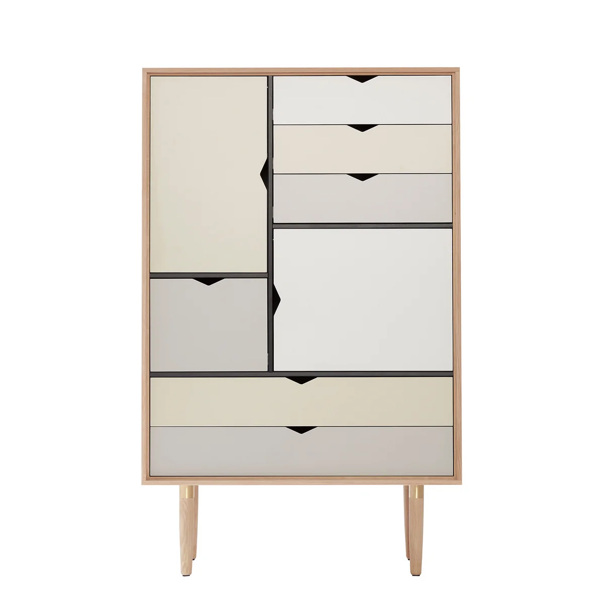 De ladekast S5 met meerkleurig front van Andersen Furniture is de smalle versie van de ladekast S3 en dus ideaal voor kleinere woonruimtes. Het idee voor de ladekasten komt van byKATO, die zich lieten inspireren door klassieke secretaresses uit Denemarken.