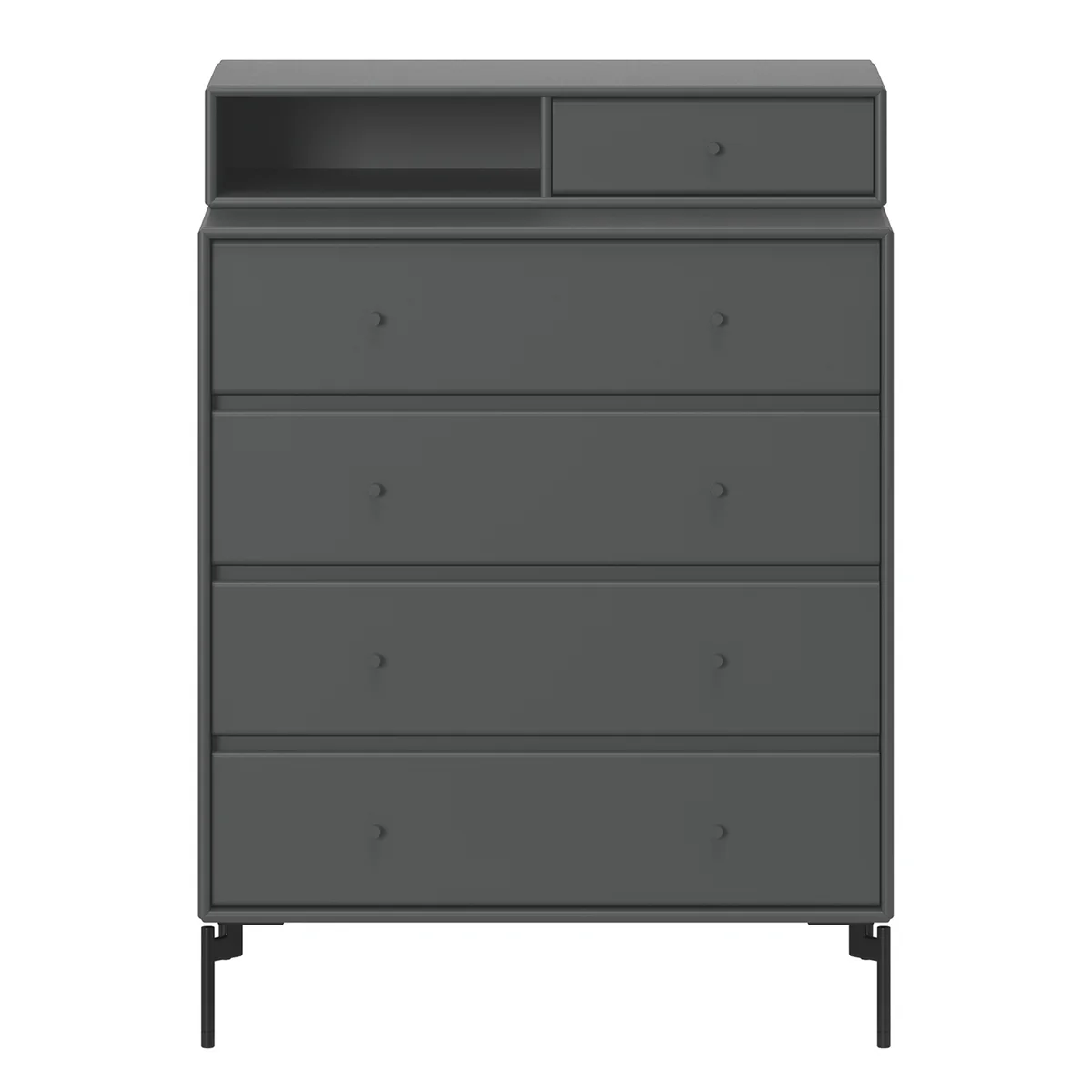 De ladekast is gemaakt van 12 mm MDF-platen en is verkrijgbaar in veel verschillende kleuren Montana . De bovenste plankmodule kan ook gemakkelijk worden verwijderd en opgehangen. De commode is naar keuze verkrijgbaar met poten, wielen, hangbeslag of een sokkel en past zich zo perfect aan elke ambiance aan.