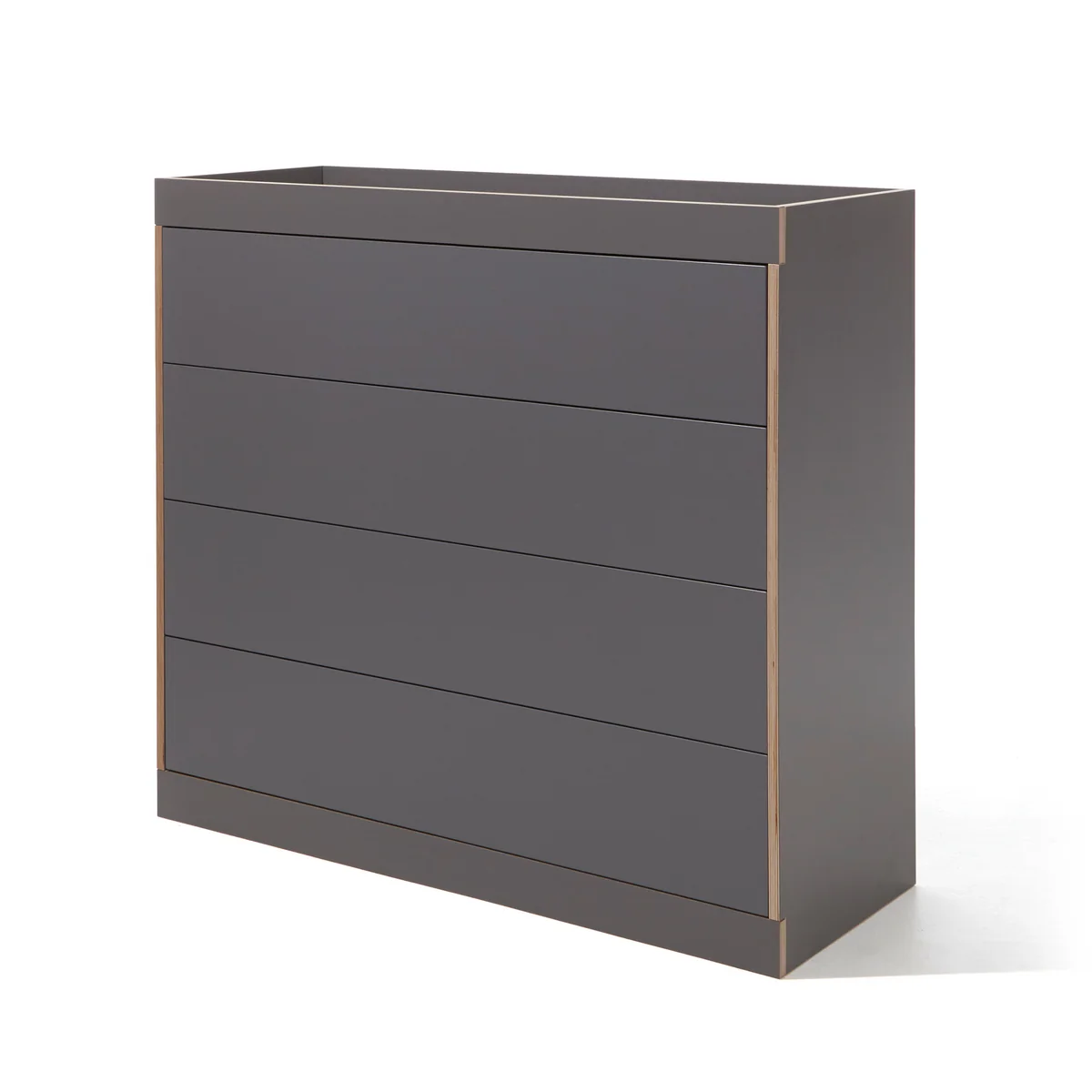 In plaats van een plat blad wordt de ladekast gekenmerkt door het kenmerkende frame op het oppervlak waarin je verschillende dingen kunt plaatsen zonder dat je bang hoeft te zijn dat ze naar beneden vallen of rollen.