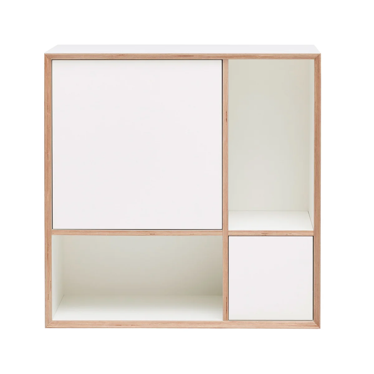 De Vertiko Sideboard van Müller Small Living is een veelzijdig inzetbaar boxmeubel dat aan de muur kan worden opgehangen of op de vloer kan worden geplaatst. Het dressoir kan zowel verticaal als horizontaal individueel en flexibel worden aangevuld met andere Vertiko modules. De vierkante basisvorm, de plaatsing van de twee greeploze deuren met push-to-open mechanisme en de twee open vakken zorgen voor een spannende en grafische uitstraling. Verschillende open en gesloten ruimtes bieden verschillende gebruiksmogelijkheden tegelijkertijd.