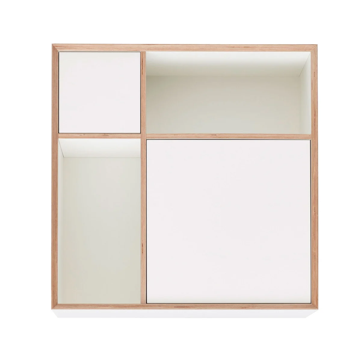 De Vertiko Sideboard van Müller Small Living is een veelzijdig inzetbaar boxmeubel dat aan de muur kan worden opgehangen of op de vloer kan worden geplaatst. Het dressoir kan zowel verticaal als horizontaal individueel en flexibel worden aangevuld met andere Vertiko modules. De vierkante basisvorm, de plaatsing van de twee greeploze deuren met push-to-open mechanisme en de twee open vakken zorgen voor een spannende en grafische uitstraling. Verschillende open en gesloten ruimtes bieden verschillende gebruiksmogelijkheden tegelijkertijd.
