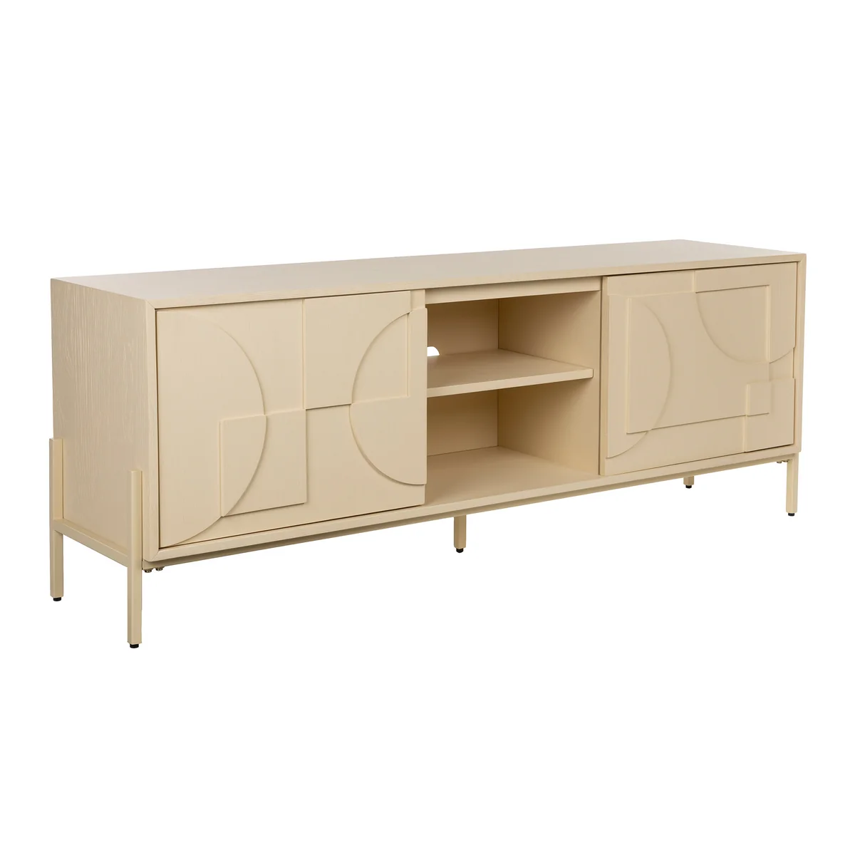 Het Faces dressoir combineert functionele opbergruimte met een opvallend, grafisch ontwerp. De voorkant heeft een karakteristiek reliëf dat abstracte gelaatstrekken suggereert en het meubel een artistieke touch geeft. Het gestructureerde oppervlak creëert spannende licht- en schaduwspellen en laat het dressoir opvallen zonder schreeuwerig te zijn.
