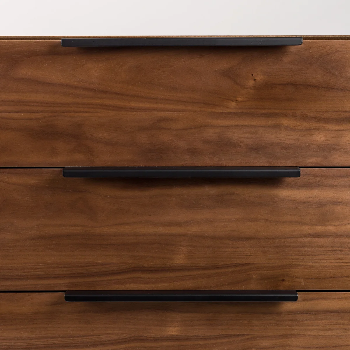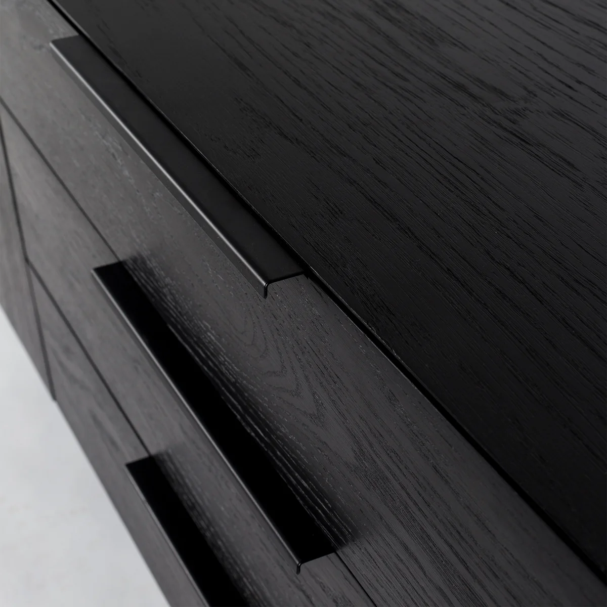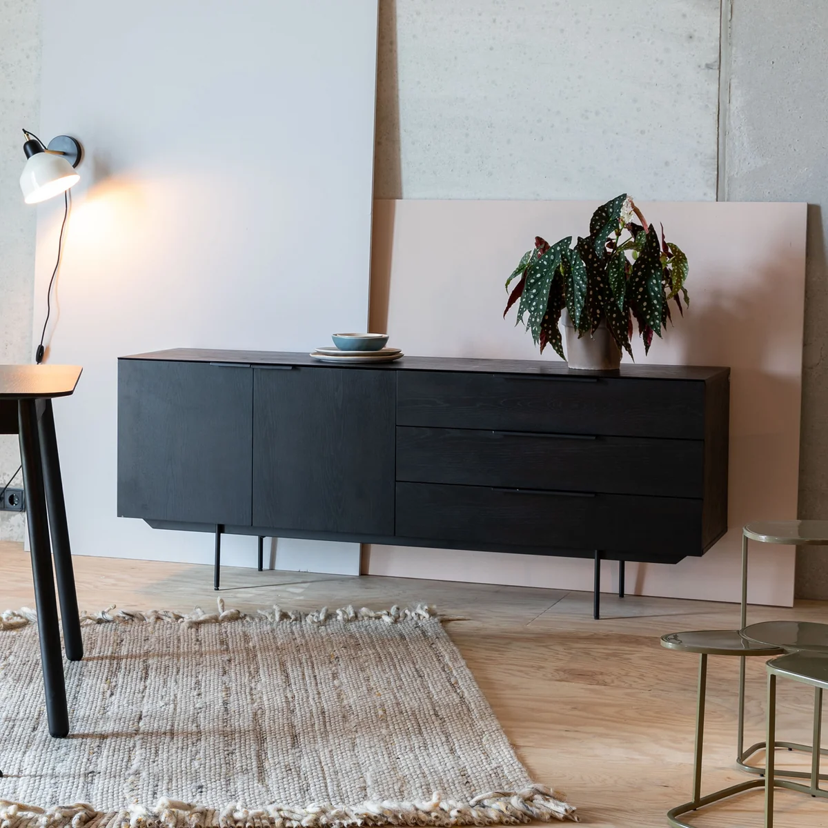 Het Travis dressoir van Zuiver combineert tijdloos mid-century design met moderne functionaliteit en is een stijlvolle toevoeging aan verschillende woonruimtes. Met zijn strakke lijnen, ultraplat profiel en slanke, zwart gepoedercoate metalen poten straalt het lichtheid en elegantie uit. De combinatie van hoogwaardig echt houtfineer en discrete handgrepen benadrukt het verfijnde karakter van het meubel.