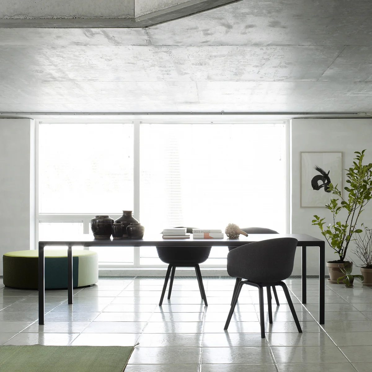 De T12 tafel van HAY, ontworpen door de eigen ontwerpstudio onder leiding van oprichter Rolf HAY, overtuigt door zijn eenvoudige en tijdloze schoonheid. Of het nu thuis is of als vergadertafel op kantoor - de T12 is in de buurt geschikt voor elke omgeving en heeft het potentieel van een echte klassieker.