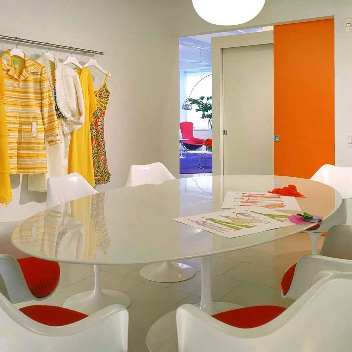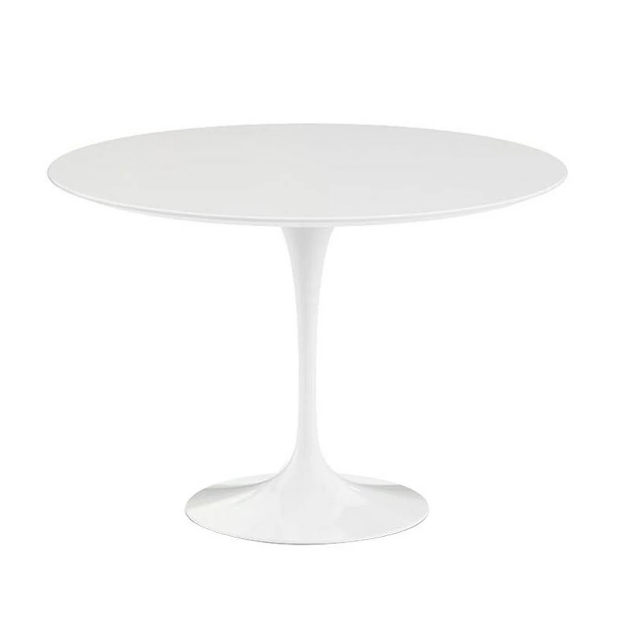 Aanvankelijk werd alleen de wereldberoemde Tulip Chair vernoemd naar de tulp, maar tegenwoordig staat de bijpassende tafel ook bekend als de "Tulip Table", omdat de collectie eenpootmeubelen van Knoll onlosmakelijk met elkaar verbonden is. Saarinen Tulip Ontworpen in 1956, is de eettafel met zijn heldere, sculpturale en organische vorm een schoolvoorbeeld van tijdloosheid die vandaag de dag nog steeds te vinden is in talloze musea, hotels en galerieën over de hele wereld.