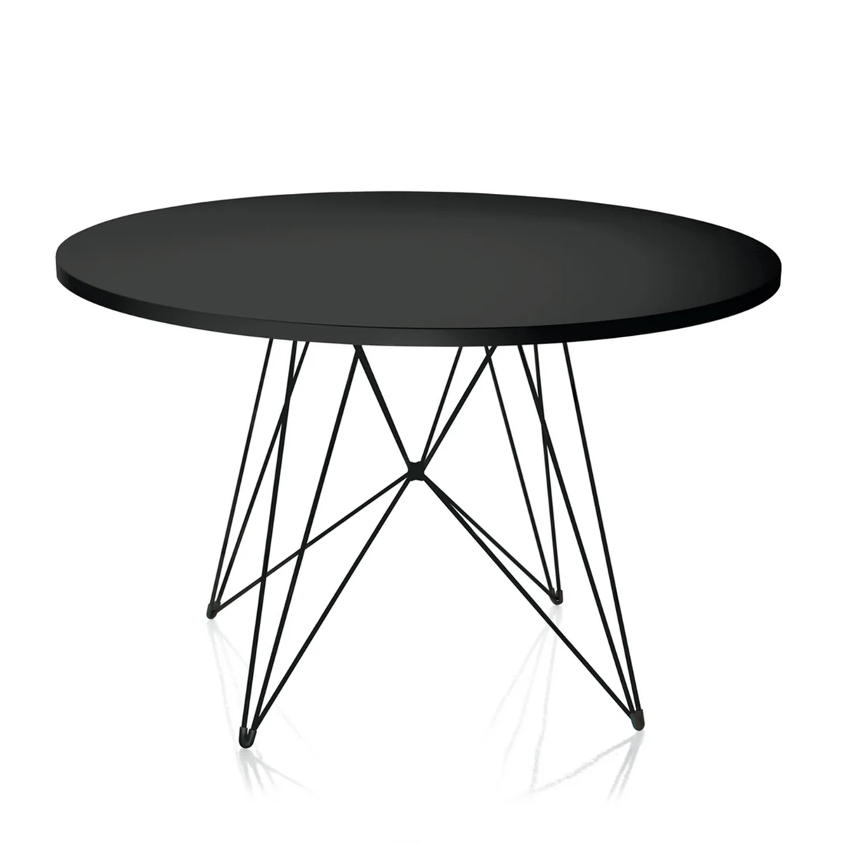 De eettafel Tavolo van Magis verschijnt met een filigraan stalen frame van staaldraad en een rond tafelblad van resistent MDF. Het Magis design van 1990 biedt met zijn ronde bovenblad voldoende ruimte voor het hele gezin.