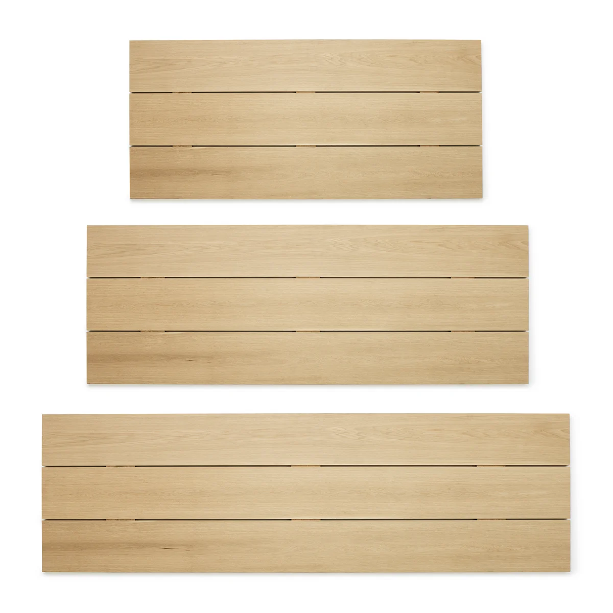 De Deense fabrikant Normann Copenhagen confronteert ons met de natuurlijke uitstraling van onbehandeld eikenhout. De natuurlijke snaarigheid van de tafel is nog steeds zichtbaar en biedt vitaliteit aan de tafel. De hardheid en de weerstand van het eikenhout maakt dit materiaal perfect voor een eettafel. Of het nu in de keuken of in de woonkamer is, als groter alternatief voor het bureau op kantoor of zelfs in restaurants - de Slice Table is veelzijdig en heeft een groot oppervlak voor allerlei doeleinden. Het hout en de rustieke uitstraling zorgen bovendien voor een natuurlijk, warm kamergevoel.