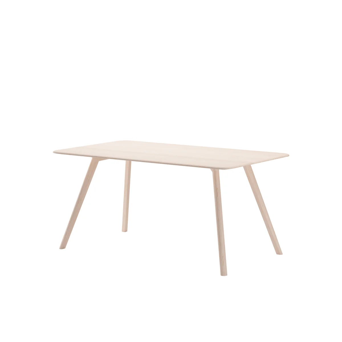 De eettafel is een plaats waar wij elkaar ontmoeten, samen eten en praten, een plaats van samenzijn. De Meyer eettafel door David Spinner voor OUT Objekte unserer Tage is zo'n plek en straalt door zijn materialiteit en vormgeving warmte, gezelligheid en geborgenheid uit. Gemaakt van massief essen- of eikenhout, waarvan de houtnerf duidelijk zichtbaar is, zet de tafel natuurlijke accenten die elke ambiance gezellig en uitnodigend maken. Door het dunne tafelblad en de slanke poten oogt het geheel helemaal niet massief, maar krijgt het een eerder Scandinavisch tintje.