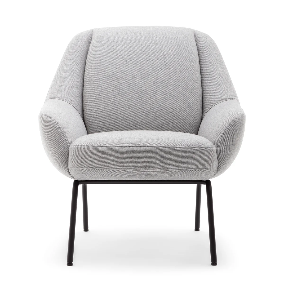 De fauteuil met een zithoogte van 44 cm bestaat uit een vierpootvormig, gepoedercoat rond stalen buizenframe. Zachte bekleding met armleuningen voor comfort. Stoffering in verschillende kleuren en materialen maken de fauteuil individueel inrichtbaar en daardoor ideaal voor elke sfeer.