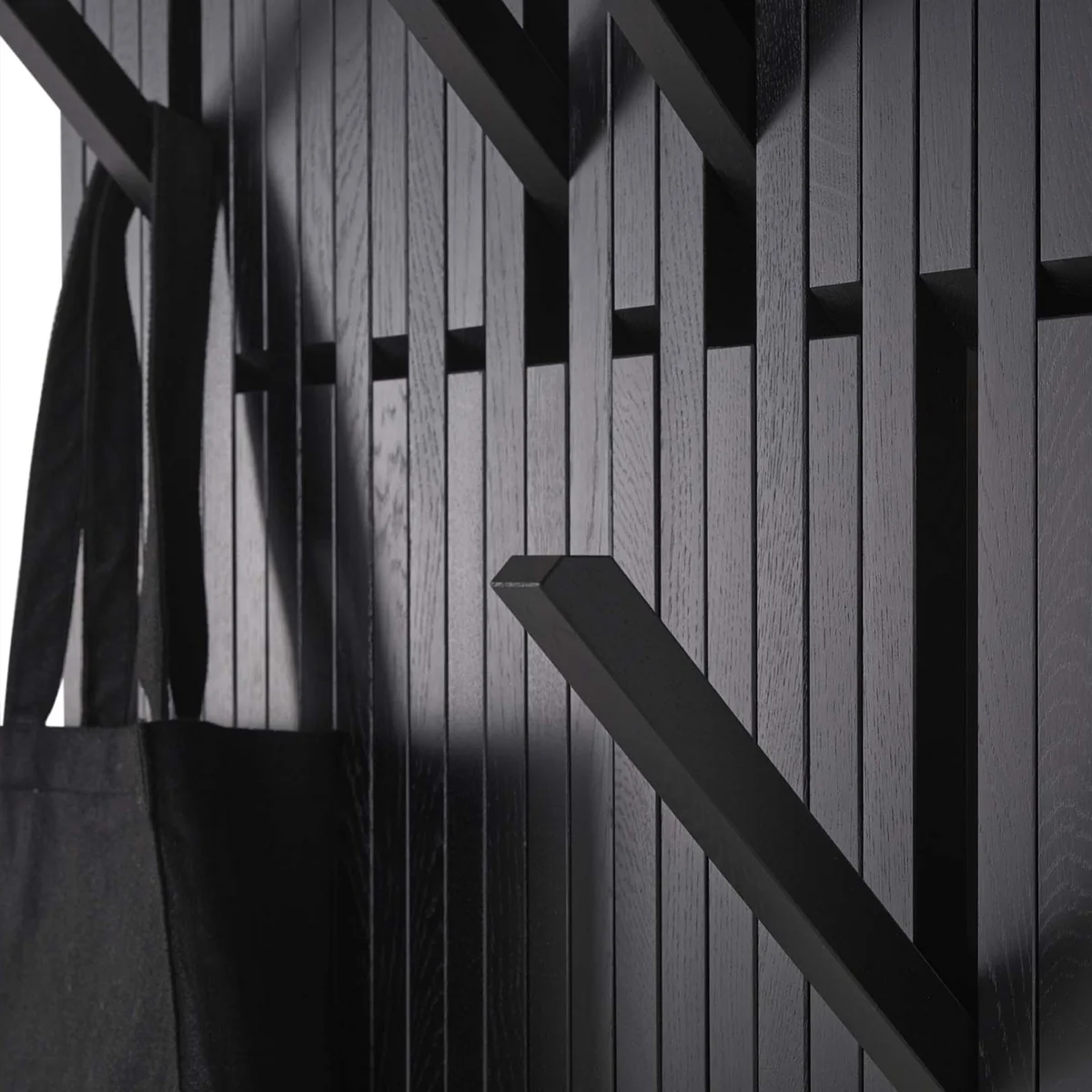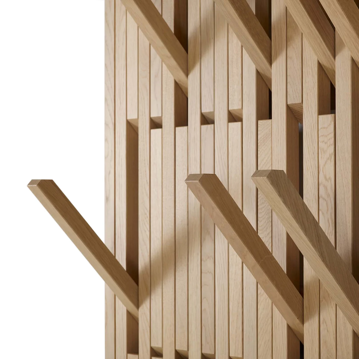 Dankzij de vele haken op verschillende niveaus is Piano Hanger ideaal voor meerdere personen en voor gezinnen met kinderen. De onderste haken van de Peruse Piano Hanger kunnen ook door kleinere kinderen worden bereikt. Als de haken niet nodig zijn, verdwijnen ze in het lichaam van de garderobe, die ook dienst doet als rustieke en grafische wanddecoratie.