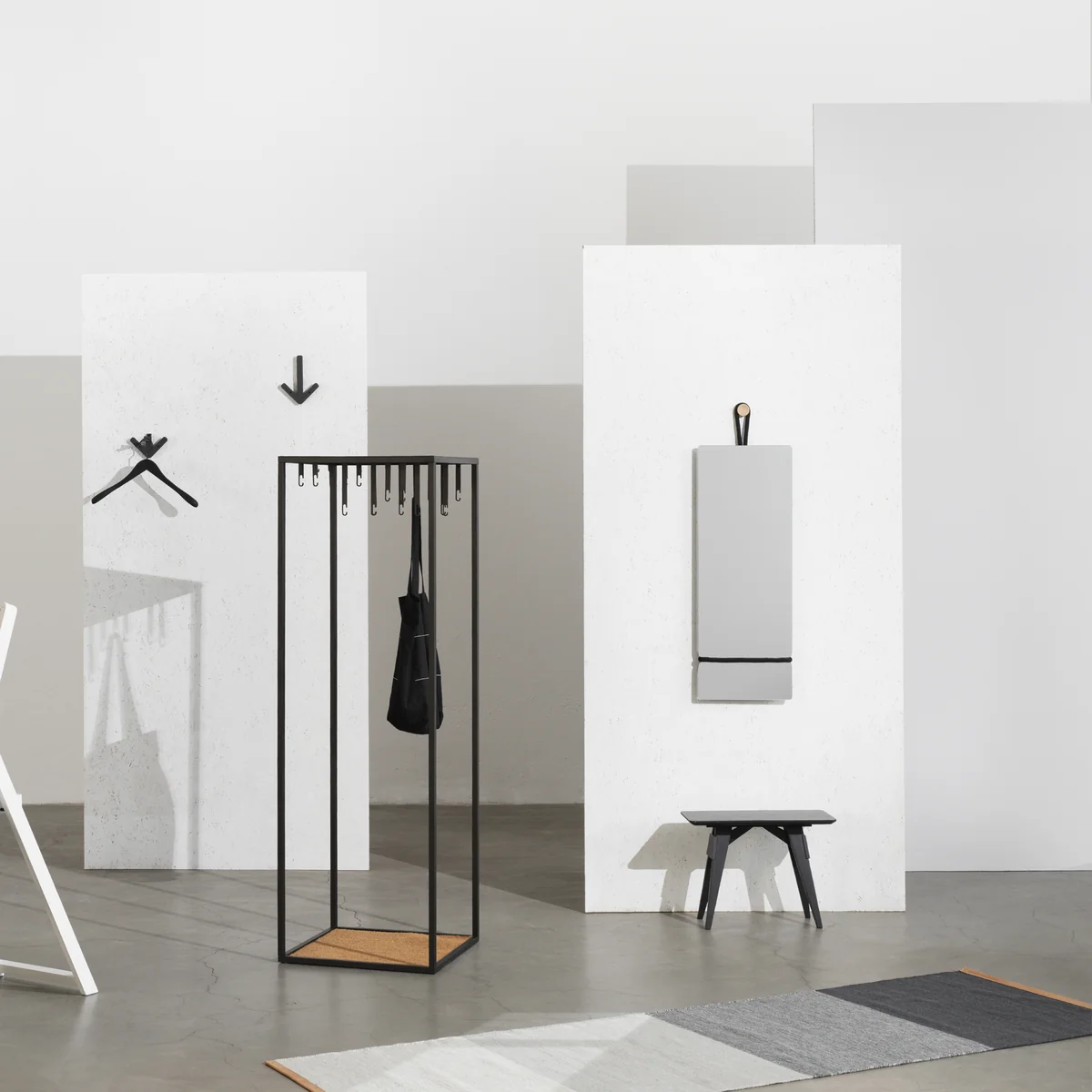 Design House Stockholm De Atelier garderobekast van is een grafisch vormgegeven, open frame-element waarin jassen, mantels, tassen en andere kledingstukken stijlvol kunnen worden uitgestald. De Atelier garderobe kan klassiek worden gebruikt in de hal, maar is ook geschikt als alternatieve garderobe in de slaapkamer.