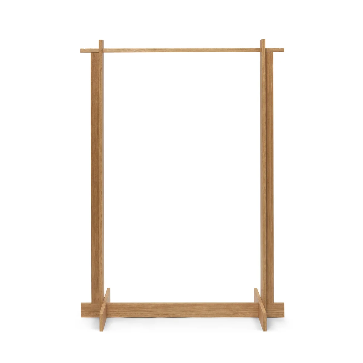 Het Bridge kledingrek van de Deense fabrikant Ferm Living is een moderne, minimalistische opbergmogelijkheid voor allerlei soorten kleding. Bridge is geïnspireerd op architectonische houten constructies en maakt indruk met zijn luchtige, tijdloze, heldere lijn. Het kledingrek is gemaakt van FSC™-gecertificeerd eikenfineer met een kern van MDF.