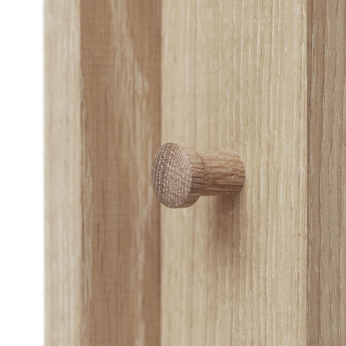 De Foyer kapstok van de Form & Refine inspireert met zijn verfijnde, gedetailleerde uitstraling. De slanke kapstok bestaat uit twee kolommen die via smalle takken met elkaar verbonden zijn. Foyer kan heerlijk vrijstaand in de gang worden geplaatst. Wanneer hij niet wordt gebruikt, kan hij echter gemakkelijk worden opgevouwen en netjes worden opgeborgen. De vier haken langs de kolommen kunnen prachtig worden gebruikt voor tassen, hoeden en dergelijke.