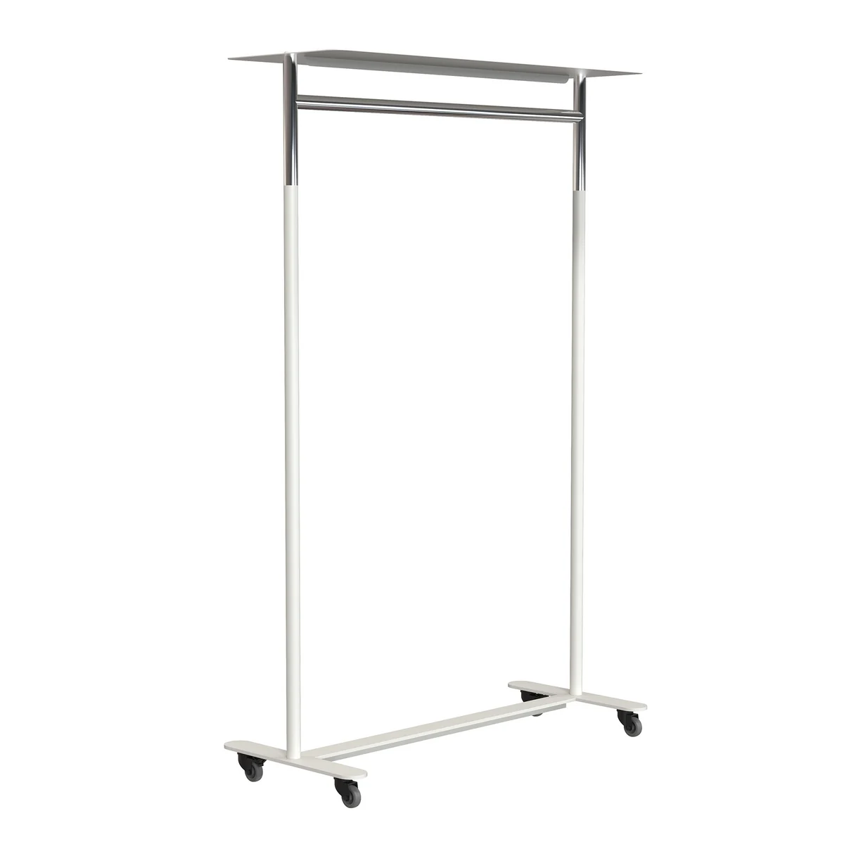 De Bukto Het kledingrek van Frost is het ideale meubelstuk voor alle fashionista's en boetiekhouders. Hij heeft lichtlopende wieltjes om de standaard snel van A naar B te verplaatsen. En op de bovenste plank kunt u tassen, hoeden en andere accessoires uitstallen. Nog een speciale Bukto Het onderste deel van de standaard is gemaakt van gecoat staal, terwijl het bovenste deel is gemaakt van gepolijst roestvrij staal - stijlvol en van hoge kwaliteit. Een ontwerp van Bønnelycke mdd.