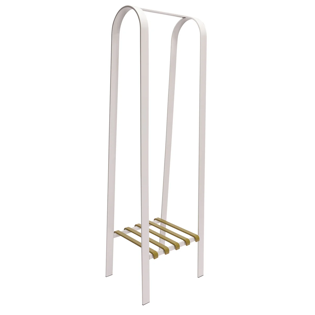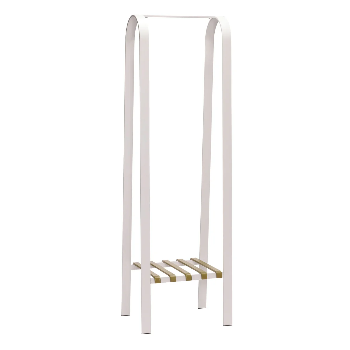 Het Sempre kledingrek van Hübsch Interior - de ultieme ruimtebesparende oplossing voor het opbergen van kleding. Het strakke ontwerp is ideaal voor kamers met beperkte ruimte, terwijl de combinatie van grijs en olijfkleur een moderne elegantie toevoegt aan elke kamer. Dit kledingrek is gemaakt van robuust staal en combineert niet alleen stijl met duurzaamheid. Het is perfect voor het organiseren van kleding en kan zelfs gebruikt worden in hotelkamers voor extra gemak.