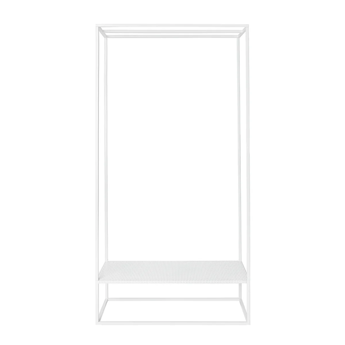 Het stalen frame van het frame is eenvoudig, elegant en stabiel. Grid is verkrijgbaar in gepoedercoat staal in verschillende kleuren. Meubels voor de entree gaan over het onderbrengen van functionaliteit in een kleine ruimte, daarom overtuigt de kledingkast met zijn compacte afmetingen en kan nog steeds veel kleding herbergen. Jassen, jassen, sjaals en tassen kunnen over de tralies of aan haken of hangers worden gehangen. Op twee lagere niveaus is ruimte voor schoenen.