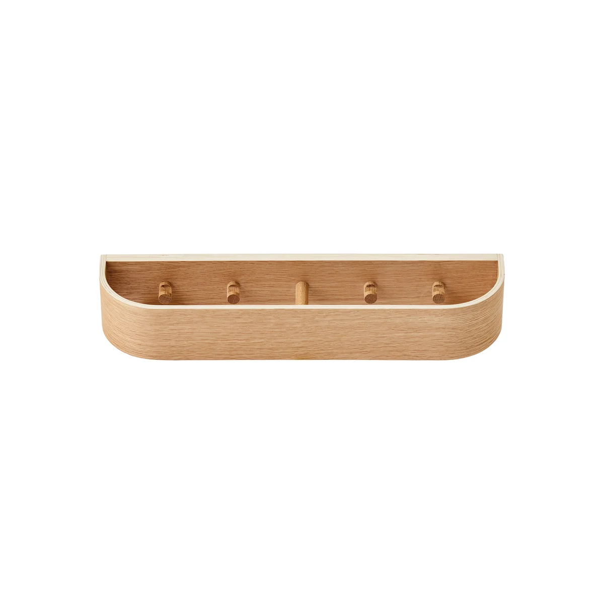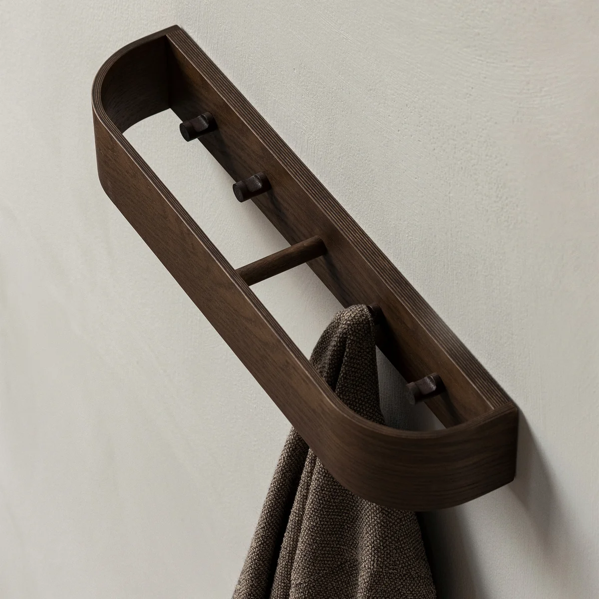 De Epoch Audo wandkapstok van brengt minimalistische charme in elke omgeving. Het ontwerp is van de ontwerper Nina Bruun. De slanke houten lijst verbergt de haken waaraan tassen, jassen en decoraties kunnen worden opgehangen en past met zijn minimalistische look in elke kamer.
