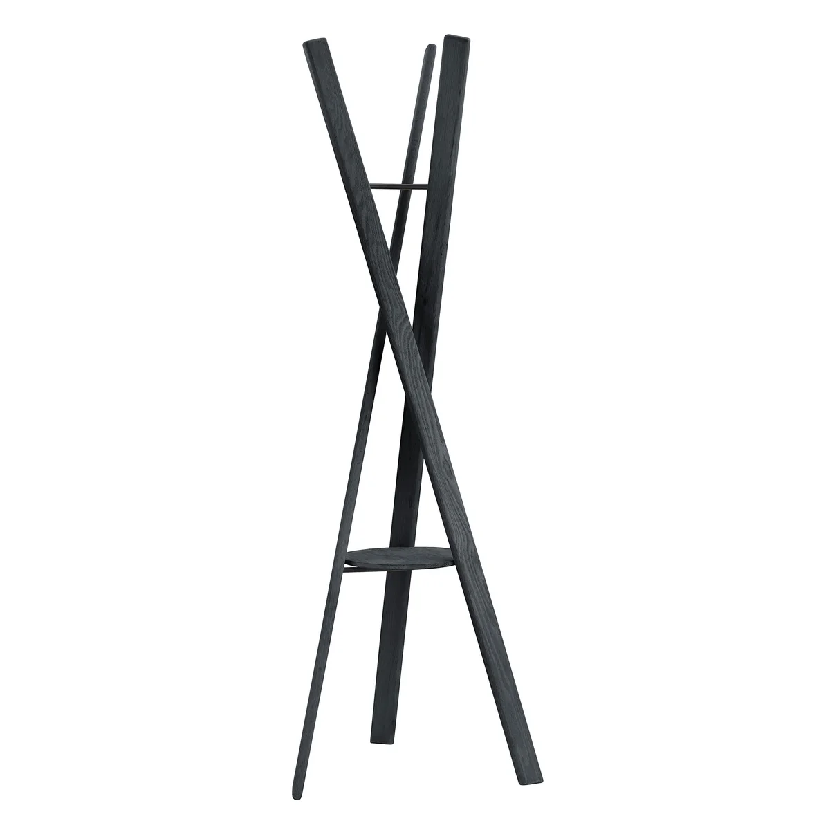 Drie elegant gebogen houten latten smelten samen in een spiraal om een organische eenheid te vormen en worden bijeengehouden door filigraan metalen elementen. Het resultaat: een object van tijdloze schoonheid dat zowel doordacht als praktisch is. De ronde plank is perfect voor sleutels, kleine tassen of accessoires. Jassen, hoeden of sjaals kunnen worden opgeborgen op de houten armen - en voor wie de dingen graag bijzonder georganiseerd heeft, kunnen hangers worden bevestigd aan de discrete metalen verbindingen.