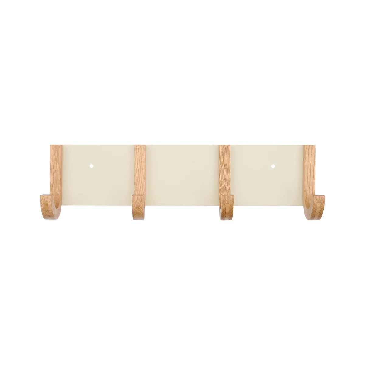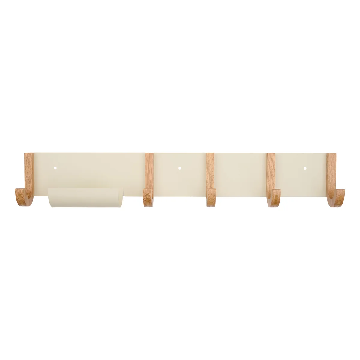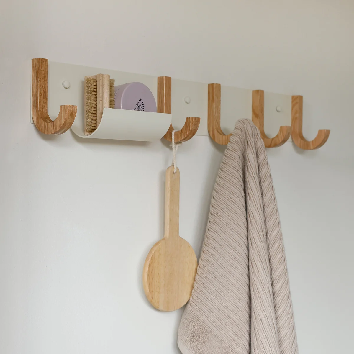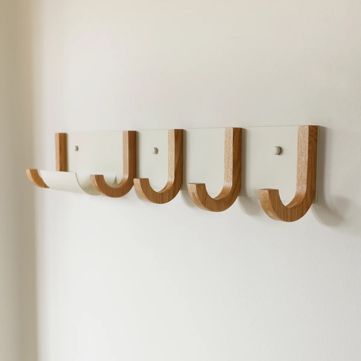 Minimalistische kapstok van eikenhout en gepoedercoat staal