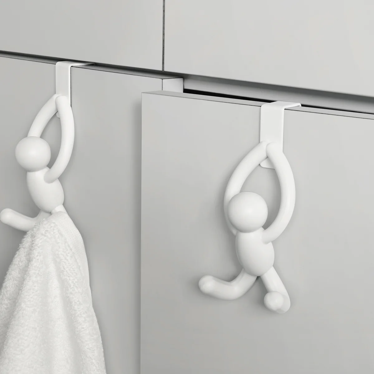 De Buddy Deurhaken van Umbra zijn een speelse en ruimtebesparende oplossing om handdoeken, tassen en andere zaken altijd binnen handbereik te houden. Buddy heeft een extra ingebouwde haak aan de binnenkant van de kastdeur, een anti-slip rubberen punt en een gewatteerd binnenoppervlak dat de kastdeur beschermt tegen krassen.
