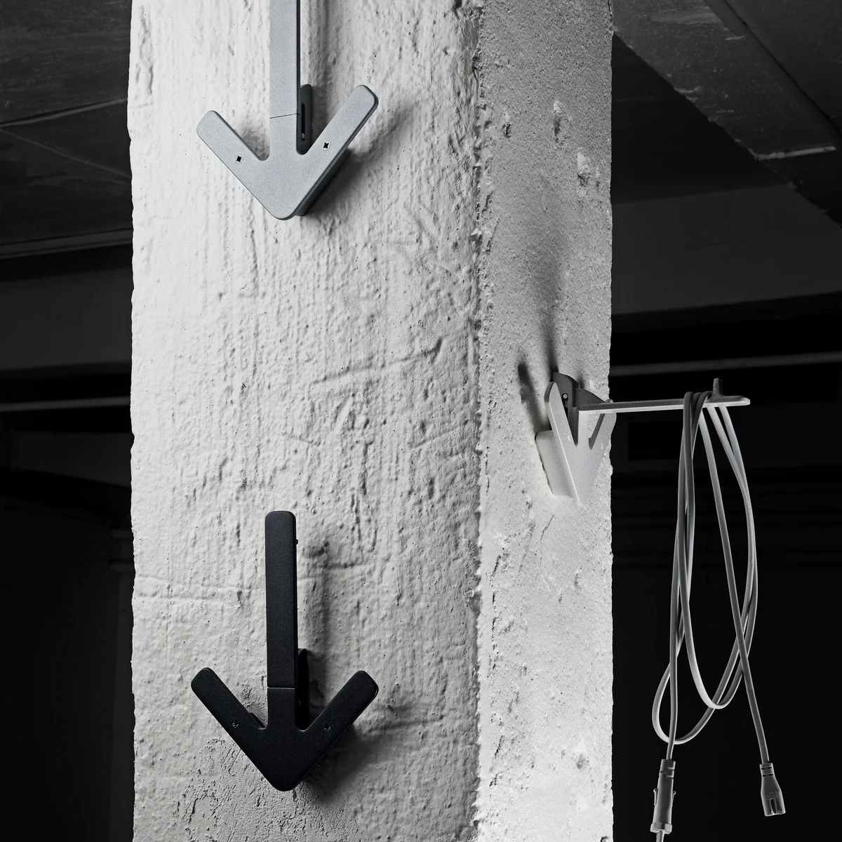 De Arrow Hanger van Design House Stockholm biedt drie verschillende mogelijkheden om kleding op te hangen: Twee aan de uiteinden van de pijlpunt en een aan het eind van de pijl. Deze laatste kan indien nodig worden ingeklapt. Als de wandhaak niet nodig is, verdwijnt hij onopvallend aan de muur, hangt dus niet meer in de weg en maakt het design van de pijl compleet.