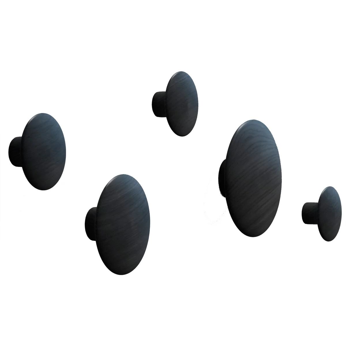 Het Noorse ontwerp van de wandhaken van Muuto is ontwikkeld door Lars Tornøe. De ontwerper gaf zijn idee de korte en droge naam " The Dots " (wat "de punten" betekent). Inmiddels zijn ze uitgegroeid tot een klassieker in het moderne Scandinavische design. De wandhaken zijn afzonderlijk of als set van hoogwaardig hout verkrijgbaar.
