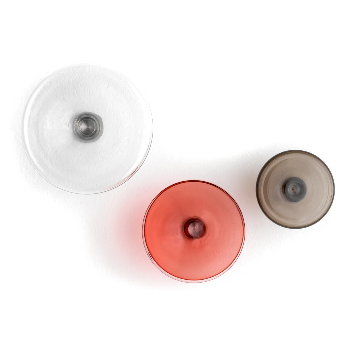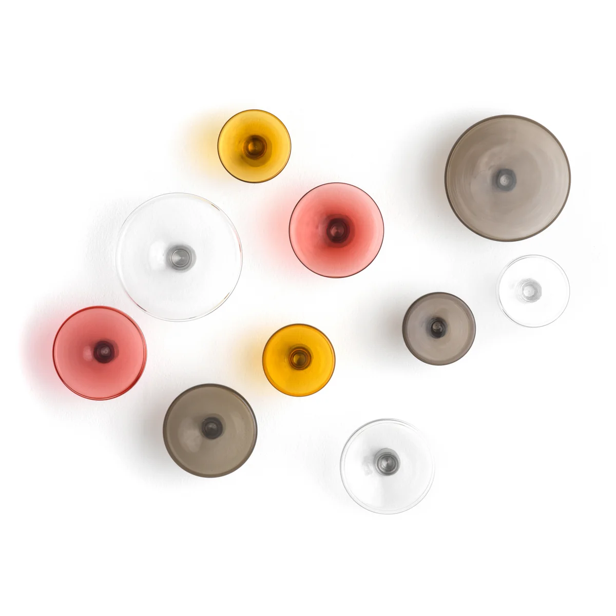 Zowel de transparante als de gekleurde haken zorgen voor een fascinerend spel van licht en schaduw op de muur erachter. De haken zijn verkrijgbaar in verschillende maten.